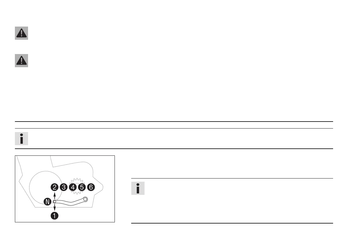 – Release the throttle while simultaneously pulling the clutch lever, shift into the next