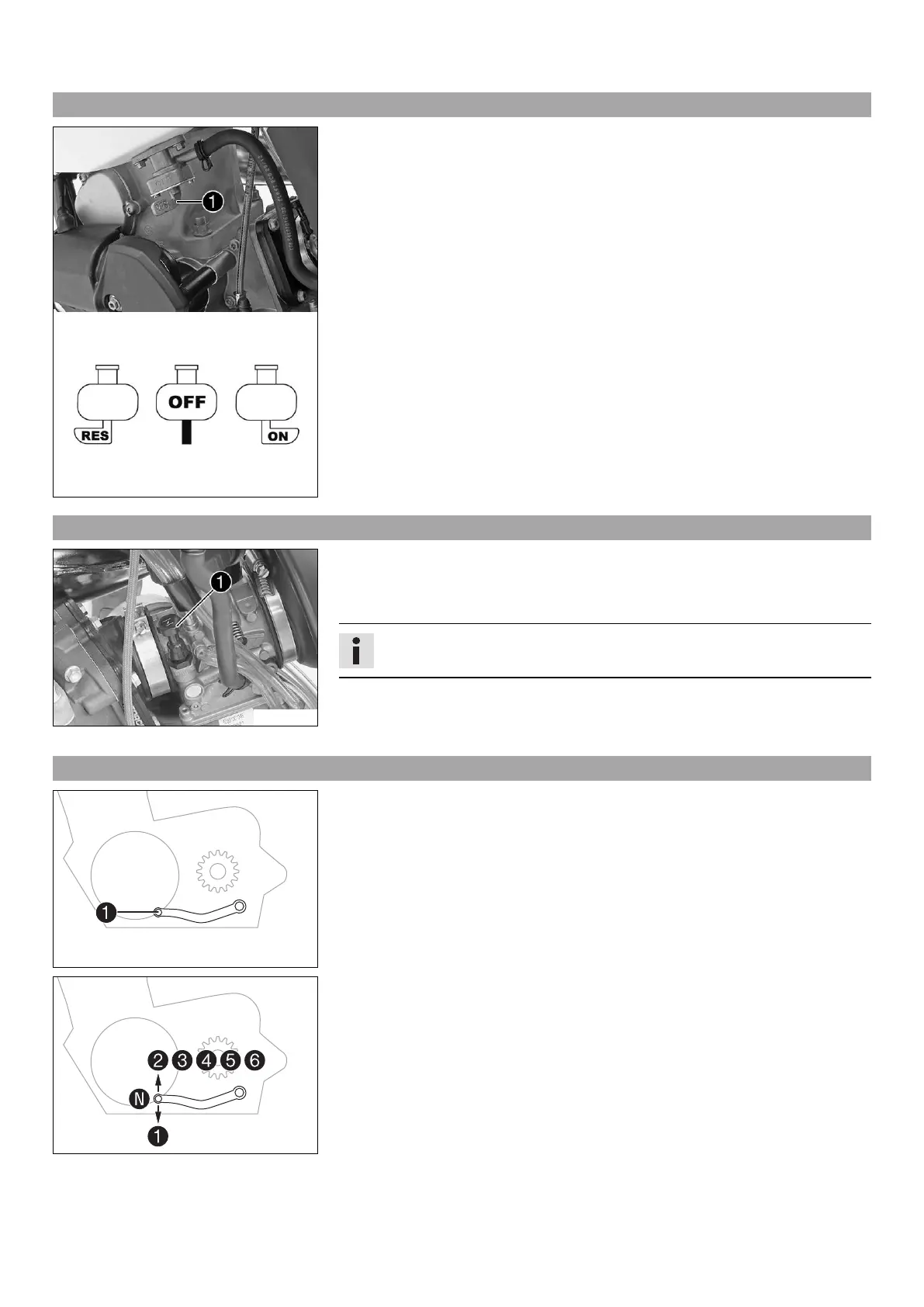 • Open the fuel reserve supply RES – Fuel can flow from the fuel tank to the carbu-