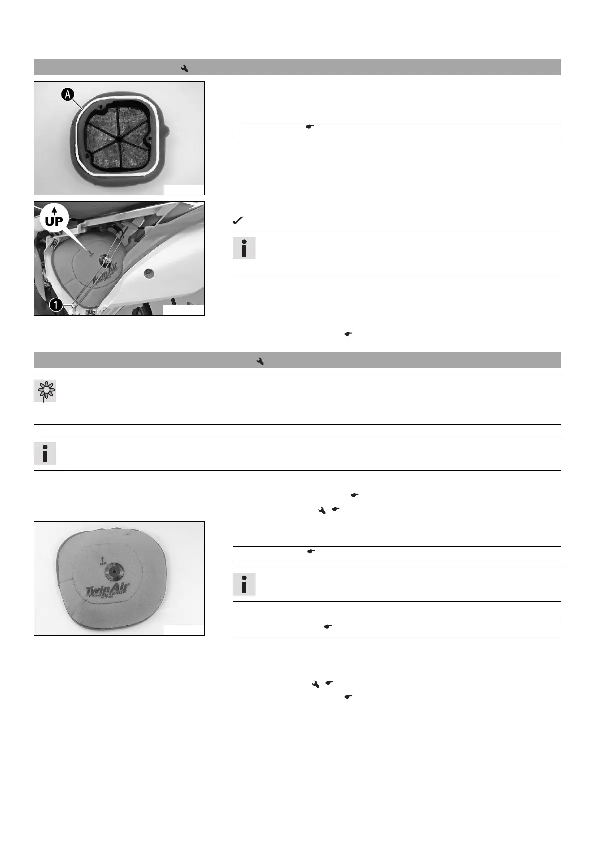 – Oil the dry air filter with a high quality filter oil.