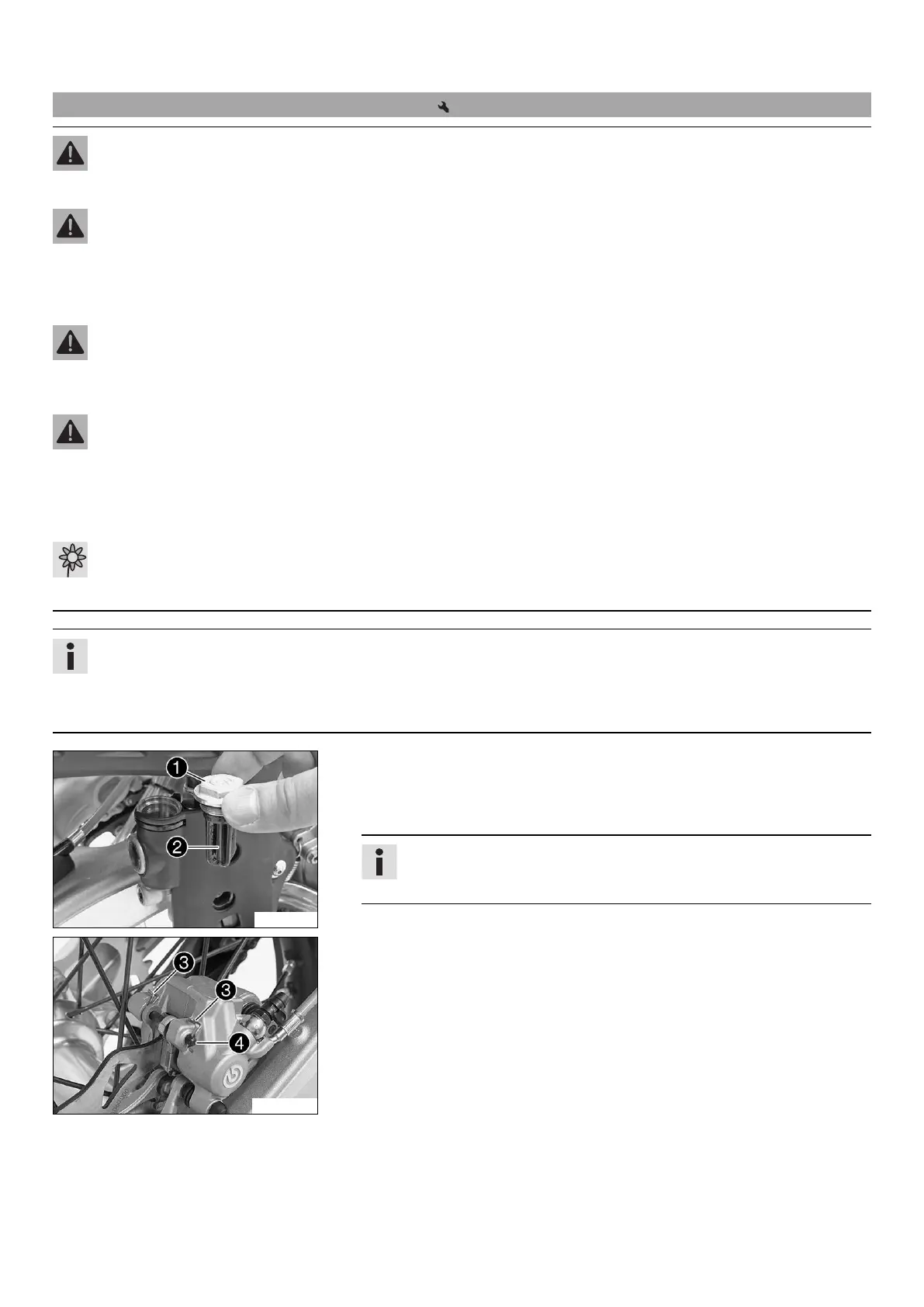– Change the brake fluid of the front and rear brake according to the service schedule. (Your authorized KTM workshop will