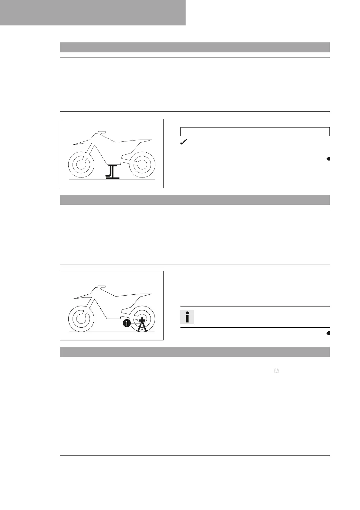 – Raise the motorcycle with a lift stand. ( p. 44)
