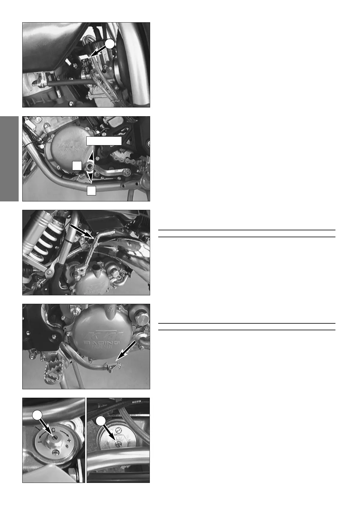 HEN STARTING THE ENGINE, PUT ON MOTORCYCLE BOOTS IN ORDER TO AVOID INJU-