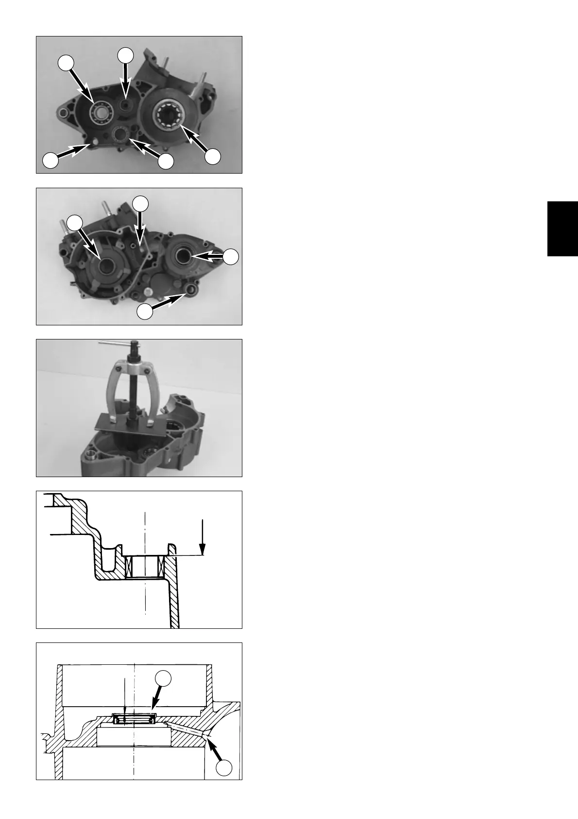 Pull out the old bearing with a bearing extractor. In order to apply the extractor ver-