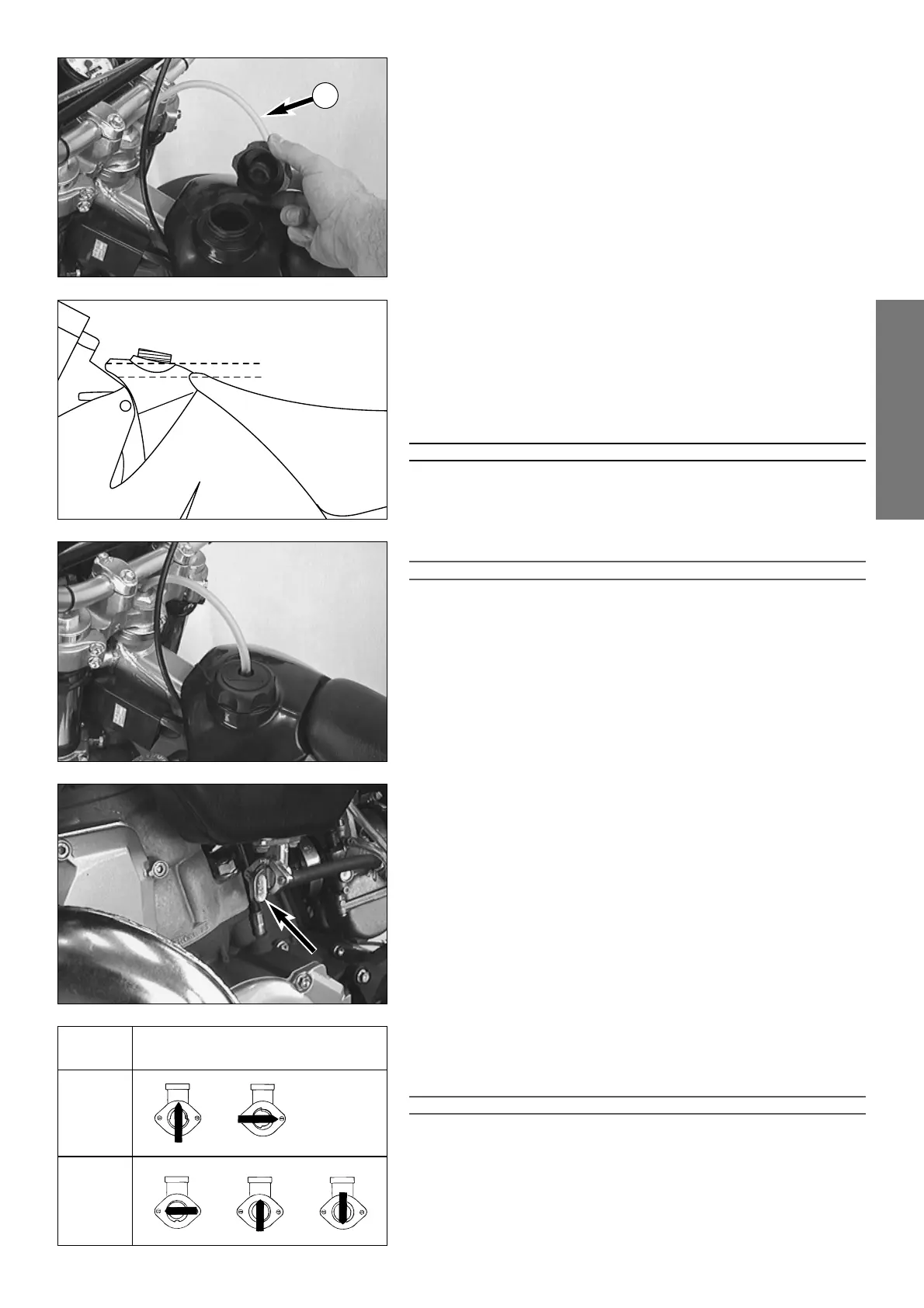 OFF In this position the fuel tap is closed. No fuel may flow to the carbure-