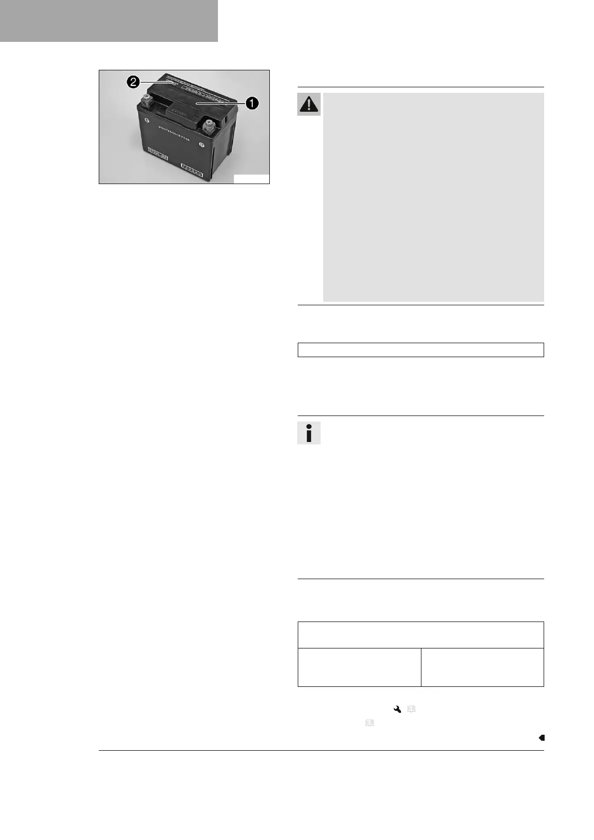 The 12-V battery is maintenance-free. The acid level