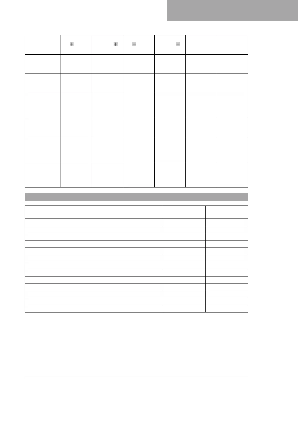 7.24 Table of conditions and menu activation