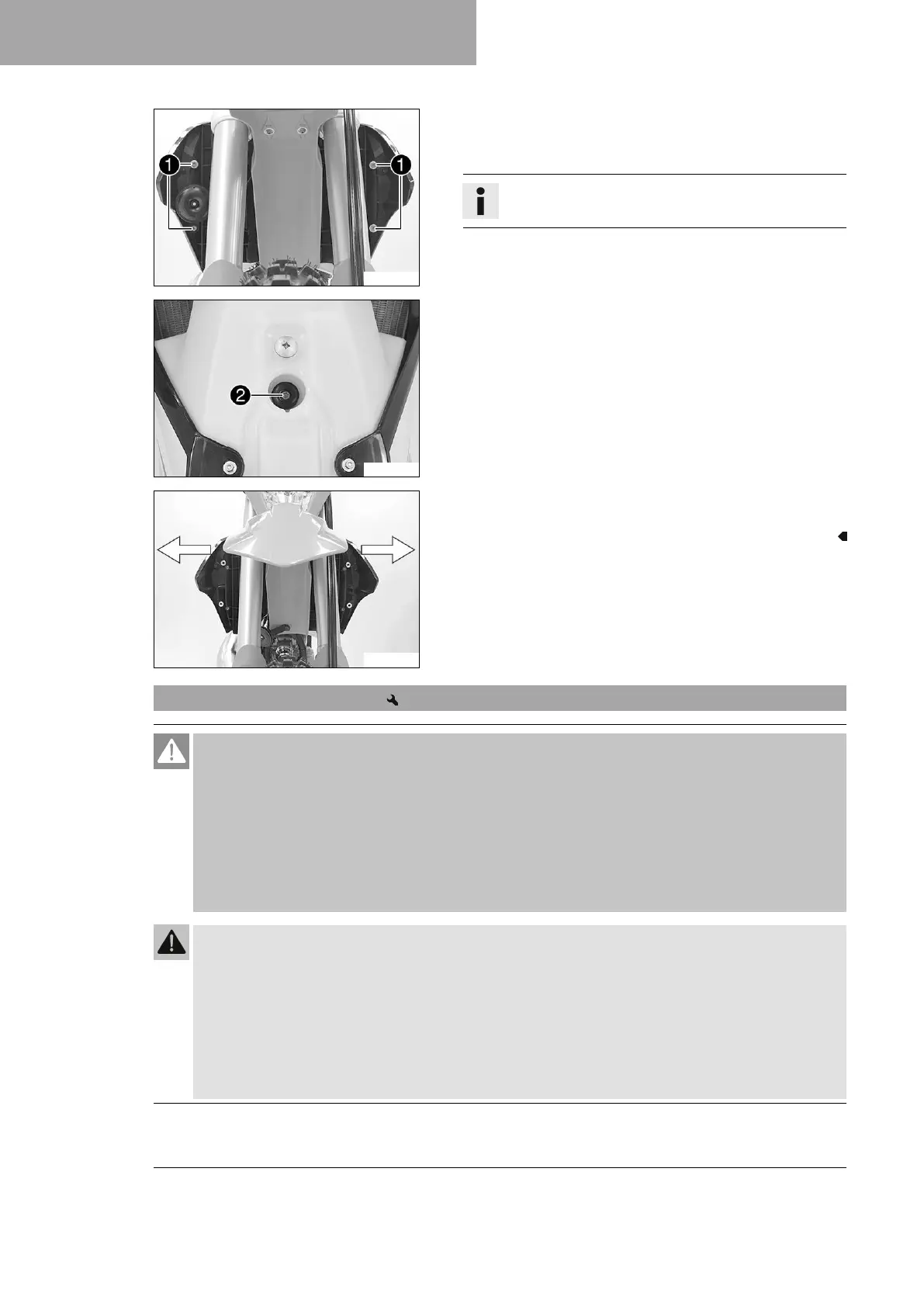 – Pull both spoilers off laterally from the radiator mount and lift