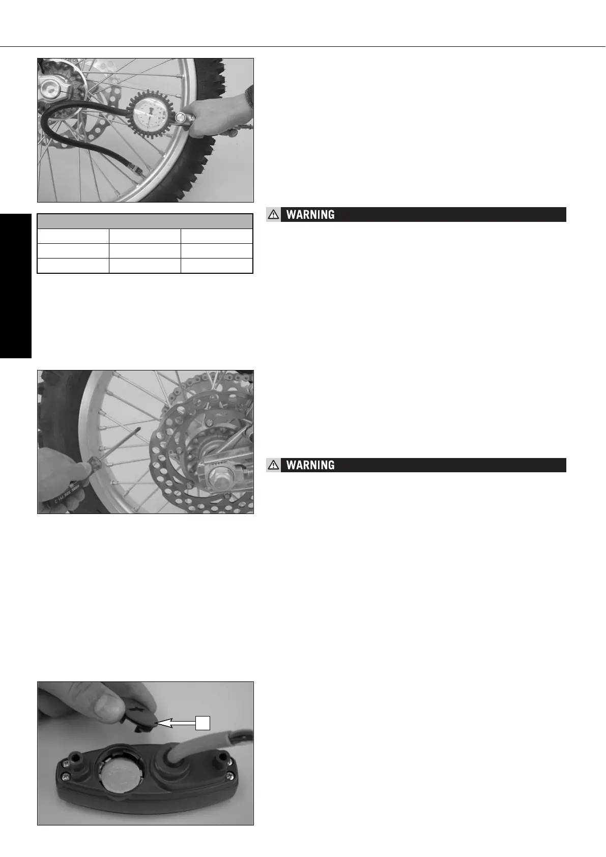 cycle. Before leaving, check tires for punctures and nails or other sharp