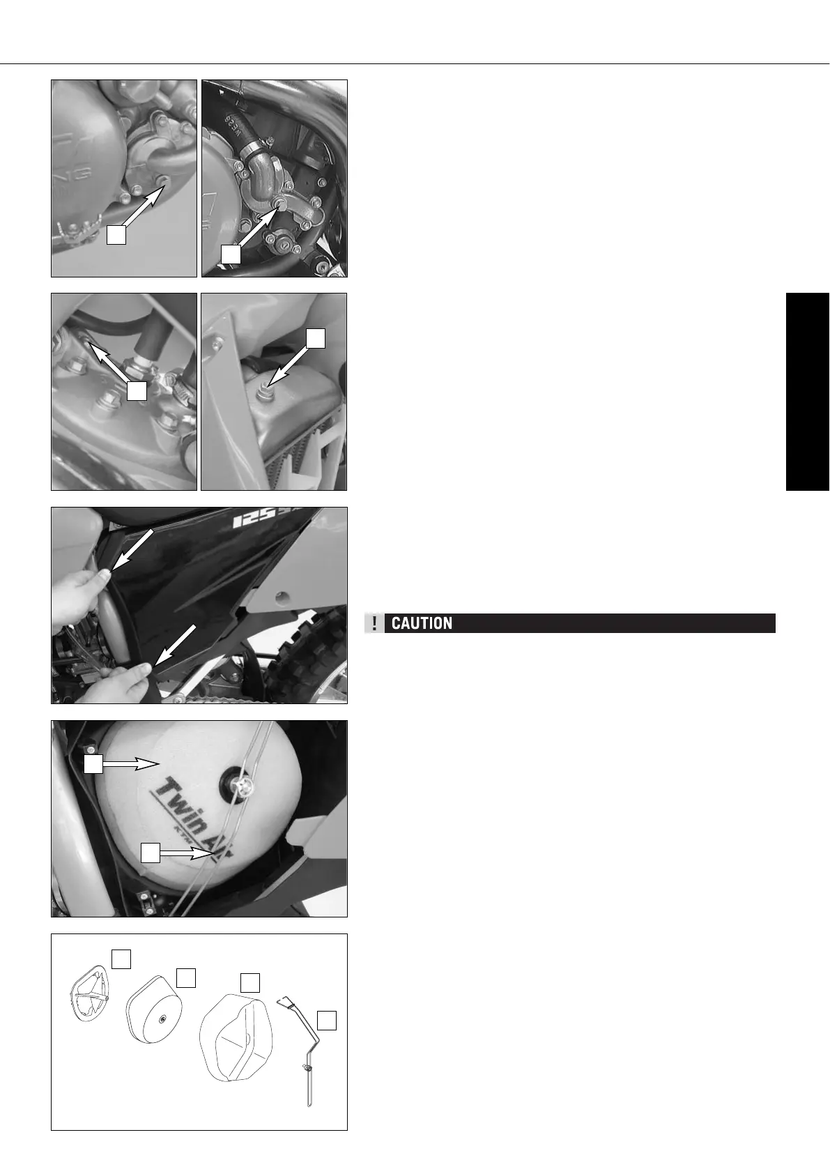 – NEVER START YOUR MOTORCYCLE WITHOUT ANY AIR FILTERS. OTHERWISE,