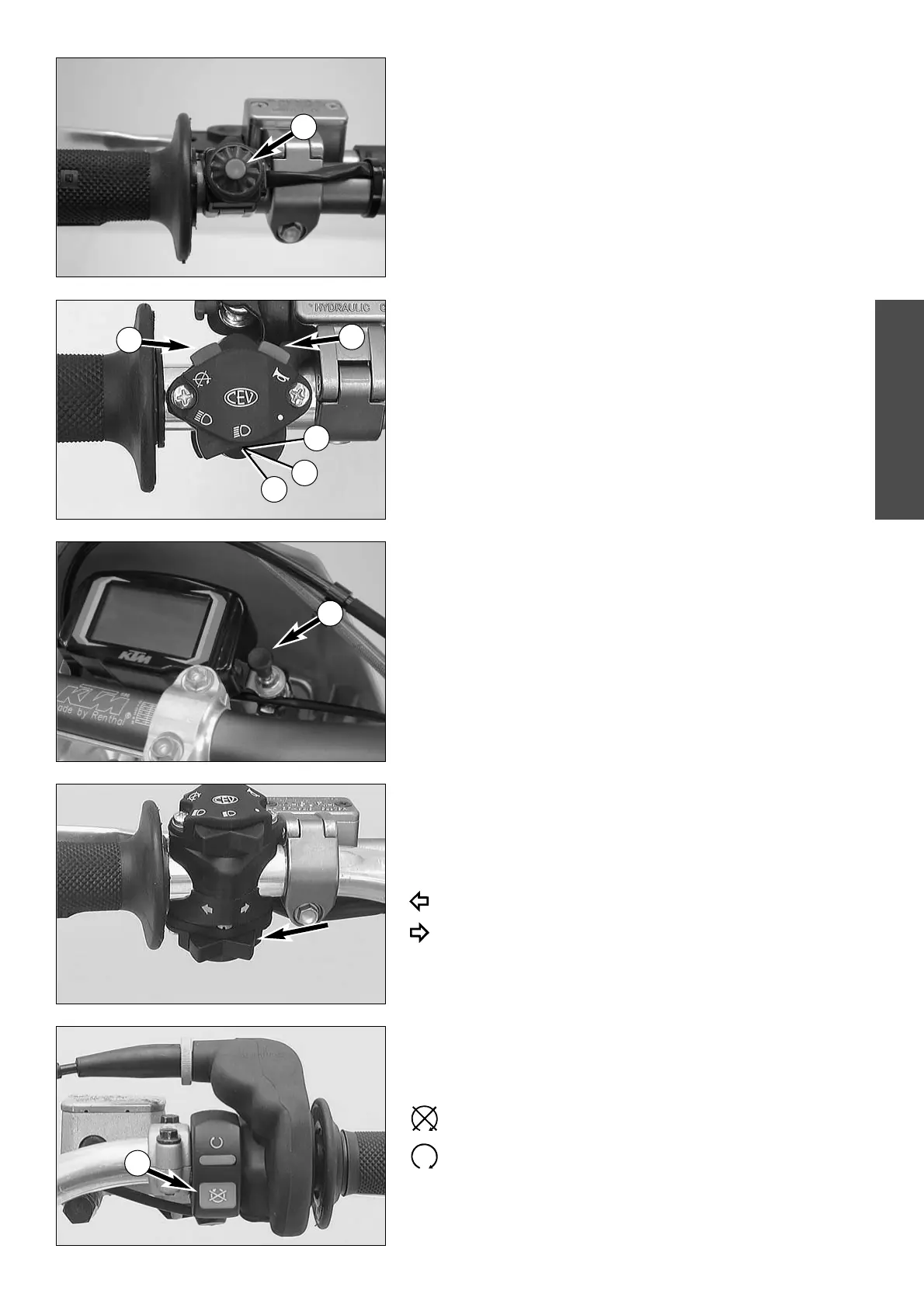 The emergency OFF switch 5 is located next to the throttle grip. Primarily