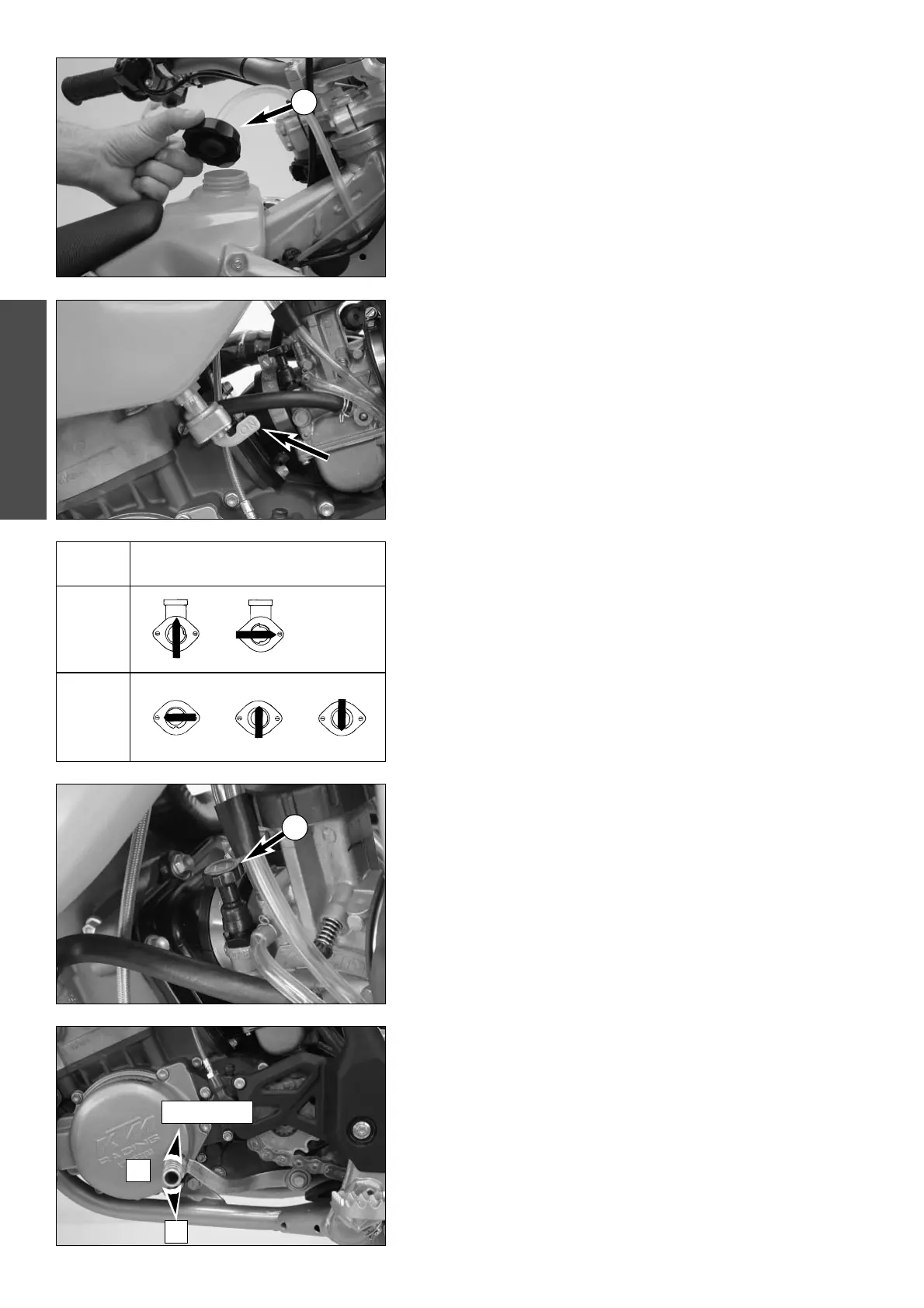 OFF In this position the fuel tap is closed. No fuel can flow to the carburetor.