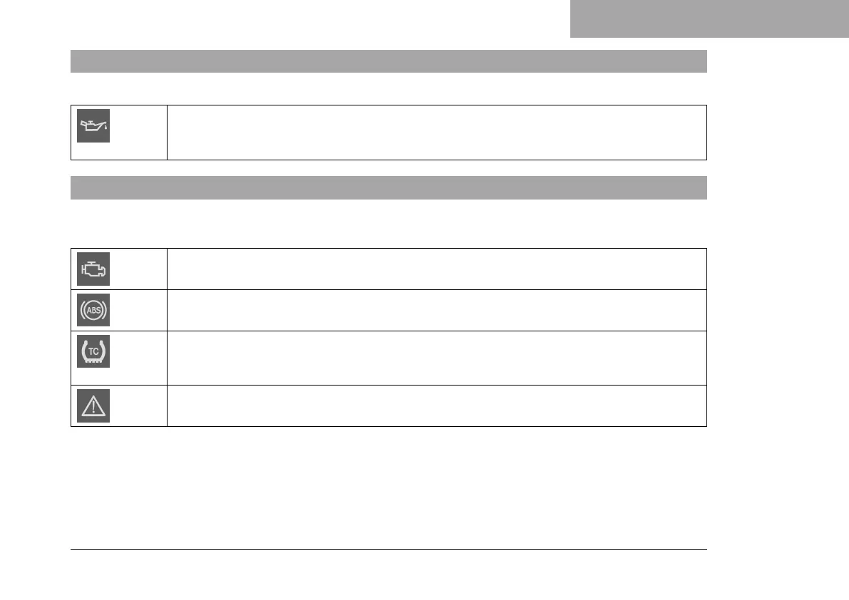 The oil pressure warning lamp lights up red – The oil pressure is too low. Stop immediately,