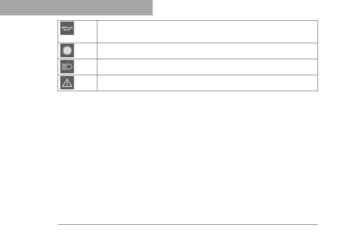 The oil pressure warning lamp lights up red – The oil pressure is too low. Stop immediately,