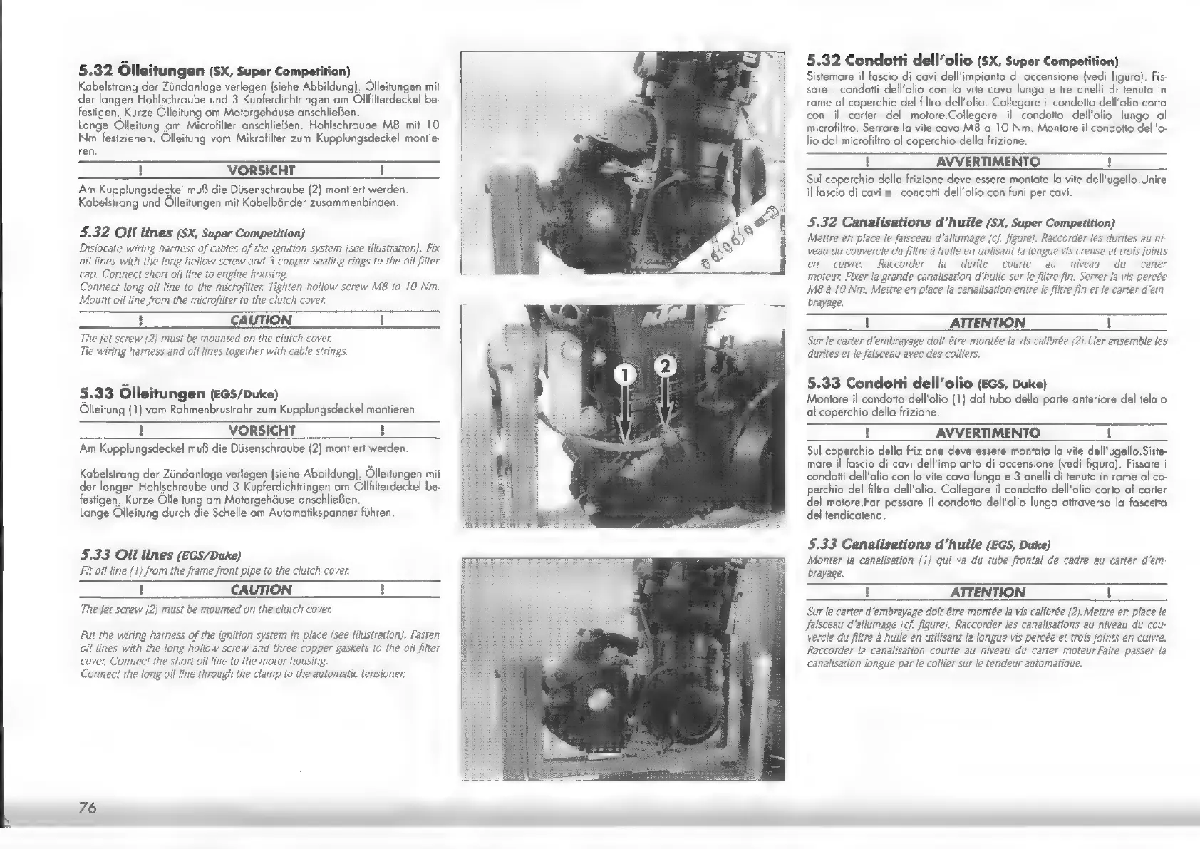 KTM 400/620 LCA - Markierungen der Ausgleichswelle; Ölleitungen (SX, Super Competition); Ólleitungen (Egs;Duke); Segni Dellalbero del Differenziale