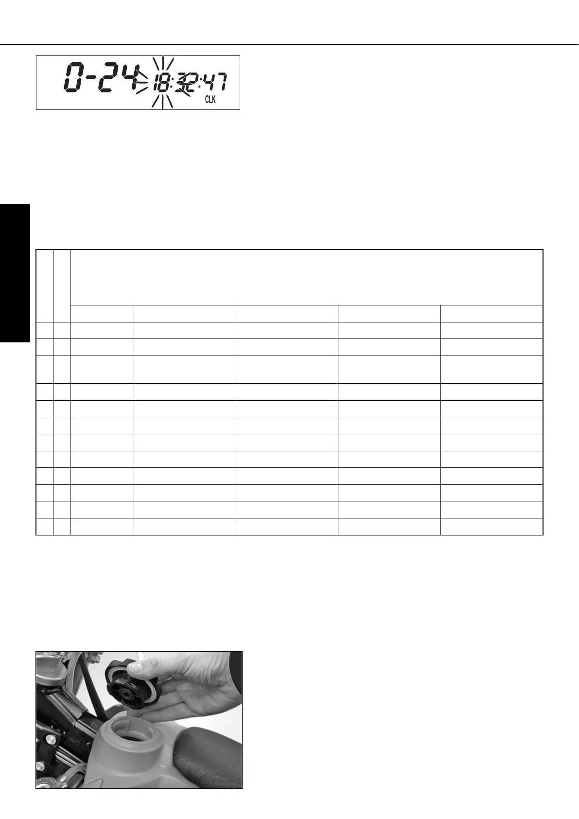 no function no function next display mode Setting the clock menu