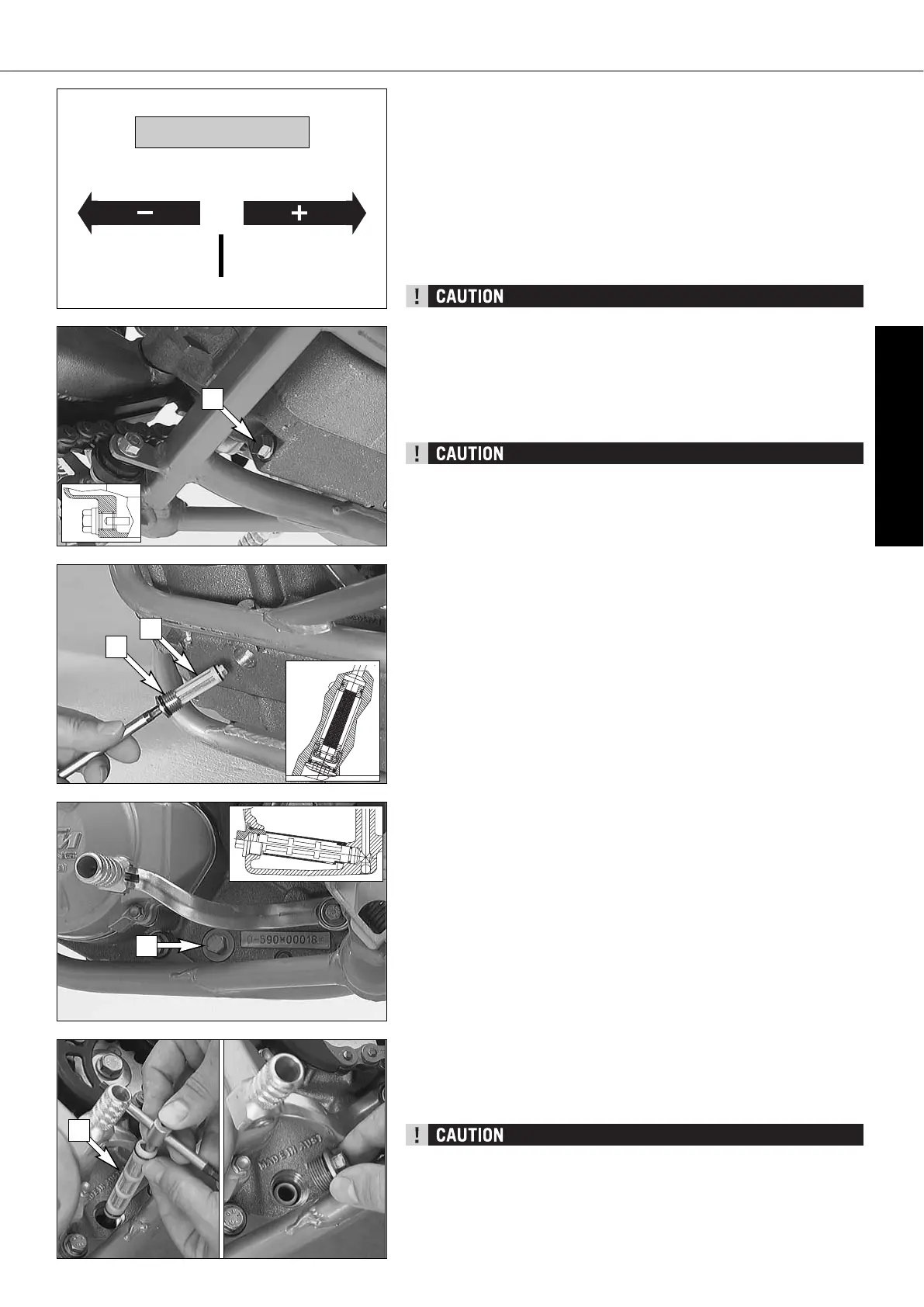 Place the motorcycle on a horizontal surface, remove the plug [1] and allow