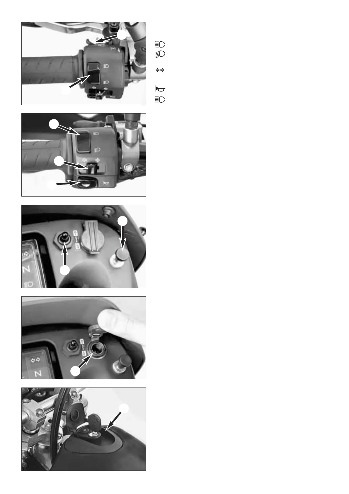 The gearshift paddle 1 is used to dim or flash the headlight.