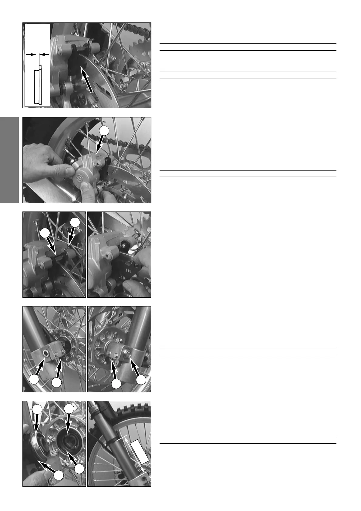 brake caliper with a drift towards the chain wheel and remove brake pads.