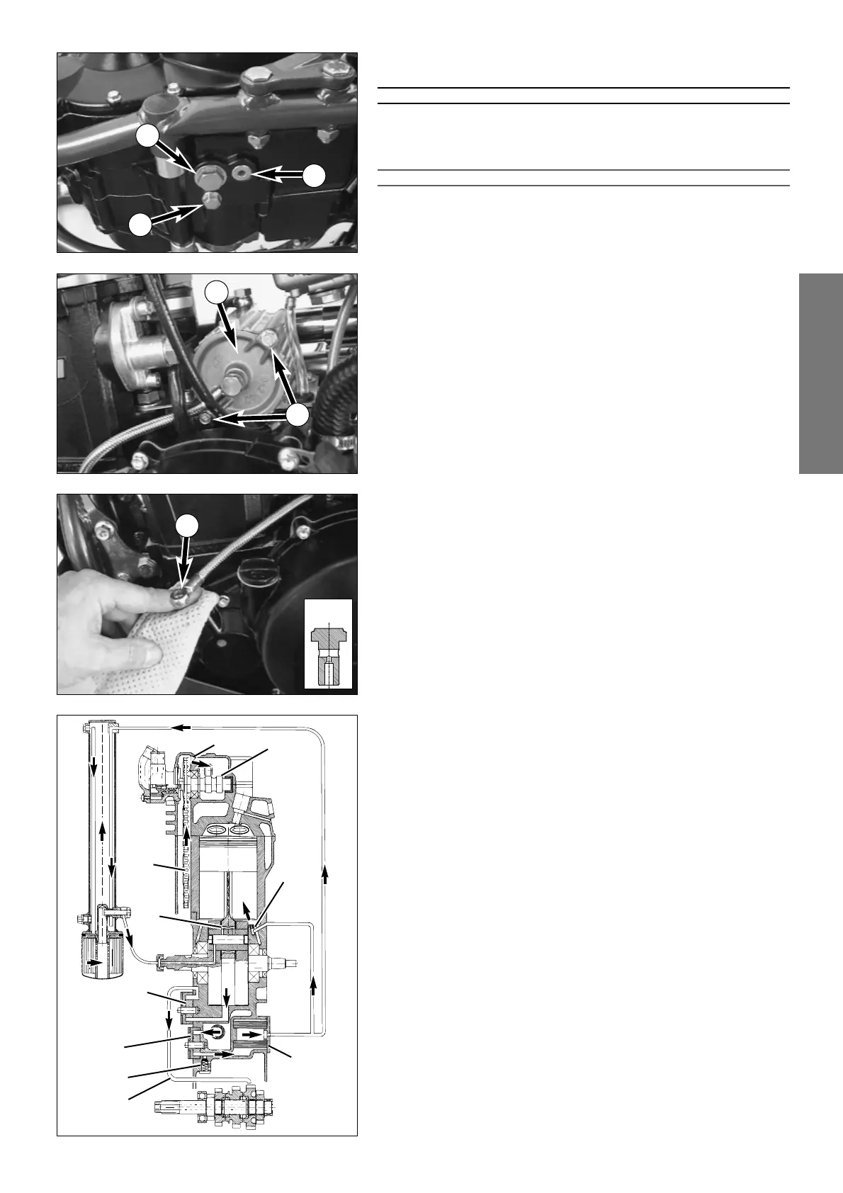 oil line on the clutch cover. Start the engine and close off the oil filler hole on the