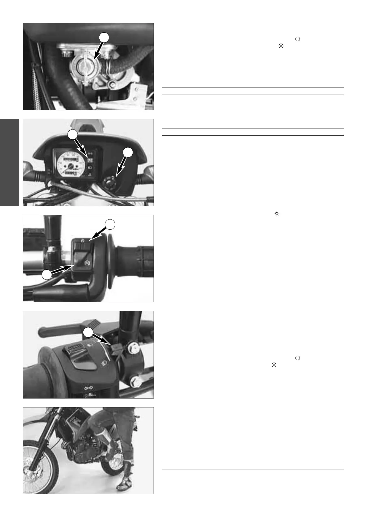 WHEN STARTING THE ENGINE, PUT ON MOTORCYCLE BOOTS IN ORDER TO AVOID