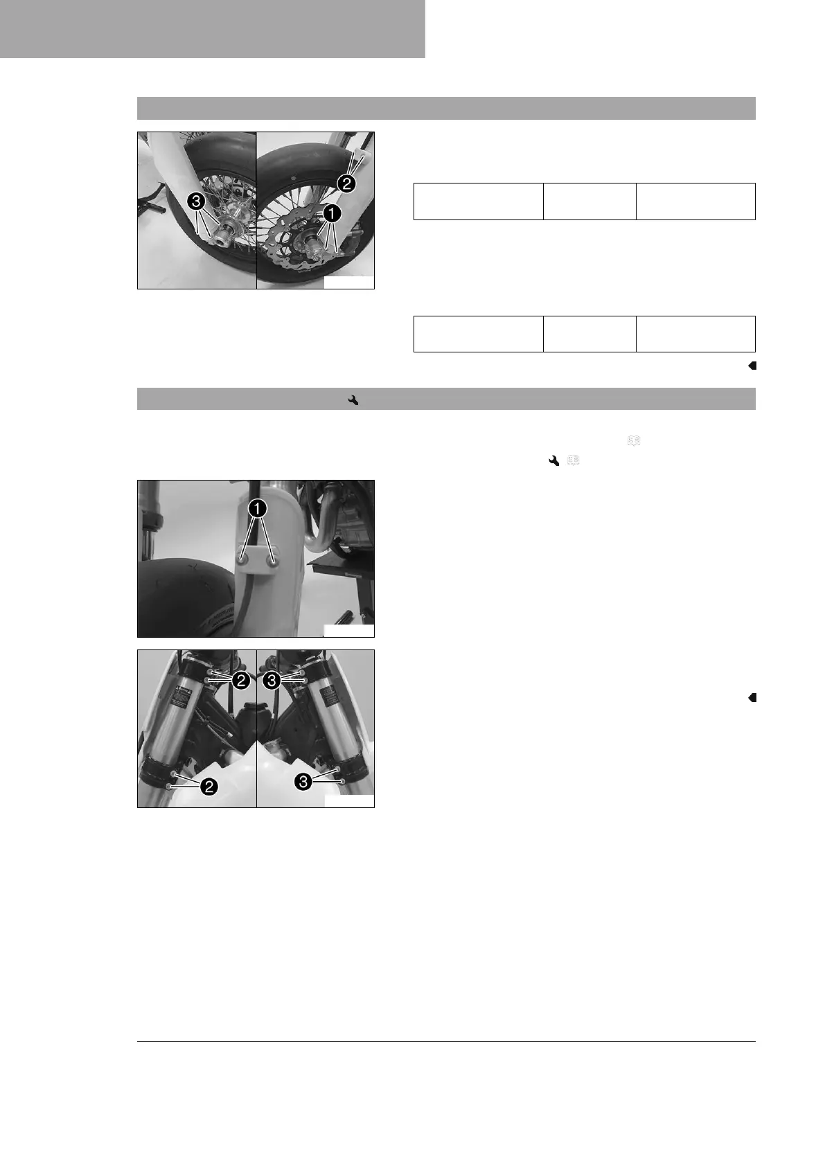 – Raise the motorcycle with a lift stand. ( p. 42)