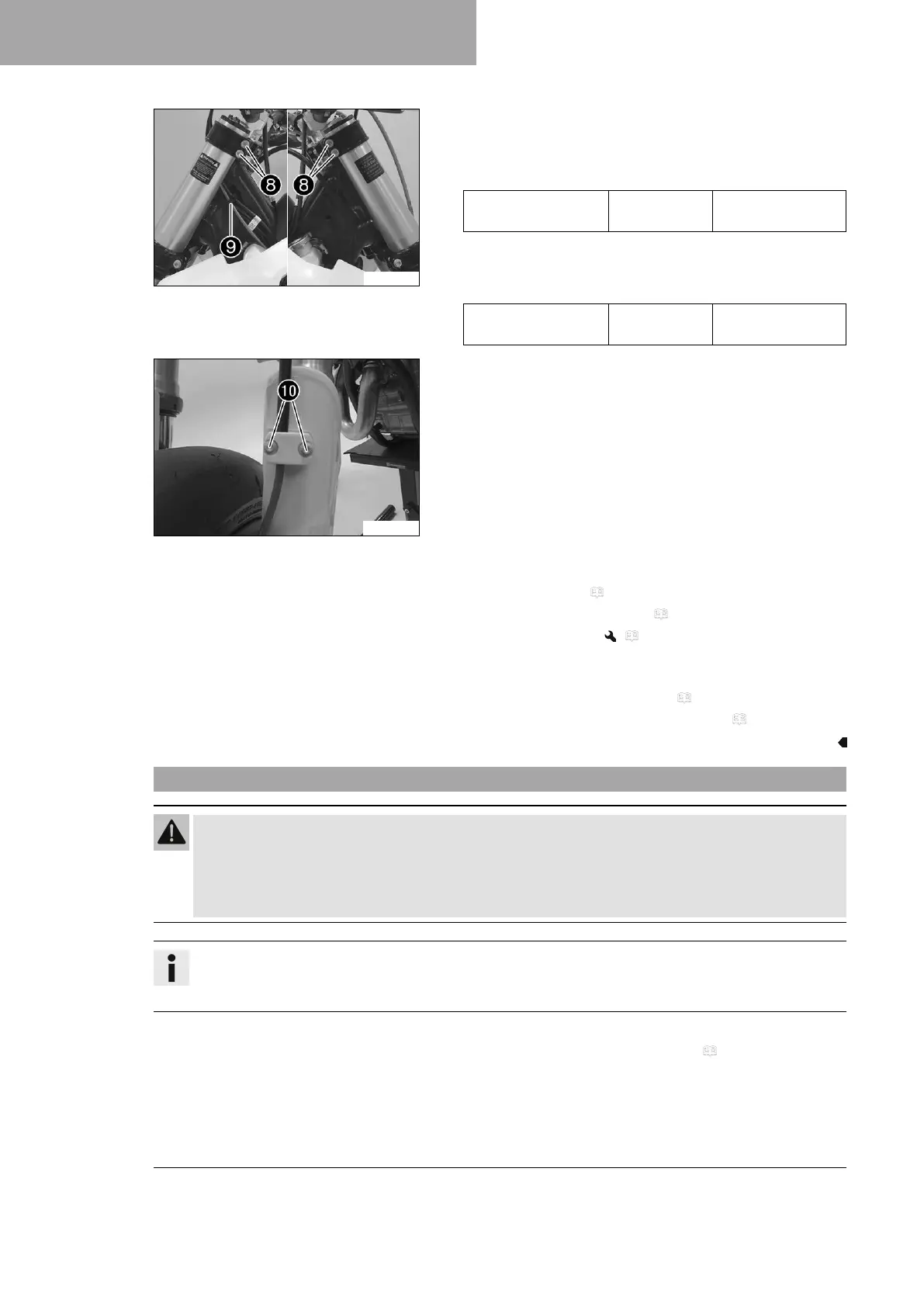 – Check steering head bearing play. ( p. 48)