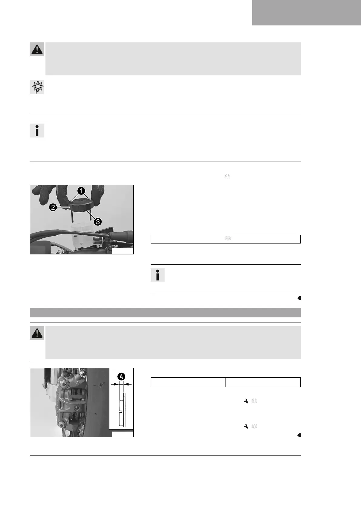 – Make sure that brake fluid for the front and rear brake is changed in accordance with the service