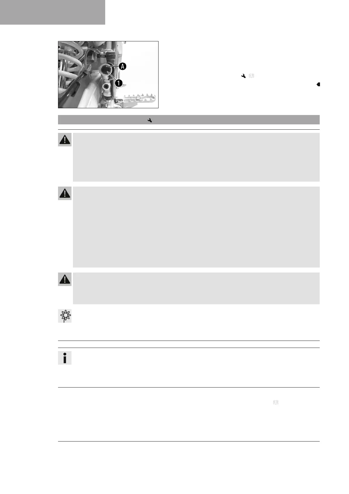 – Make sure that brake fluid for the front and rear brake is changed in accordance with the service