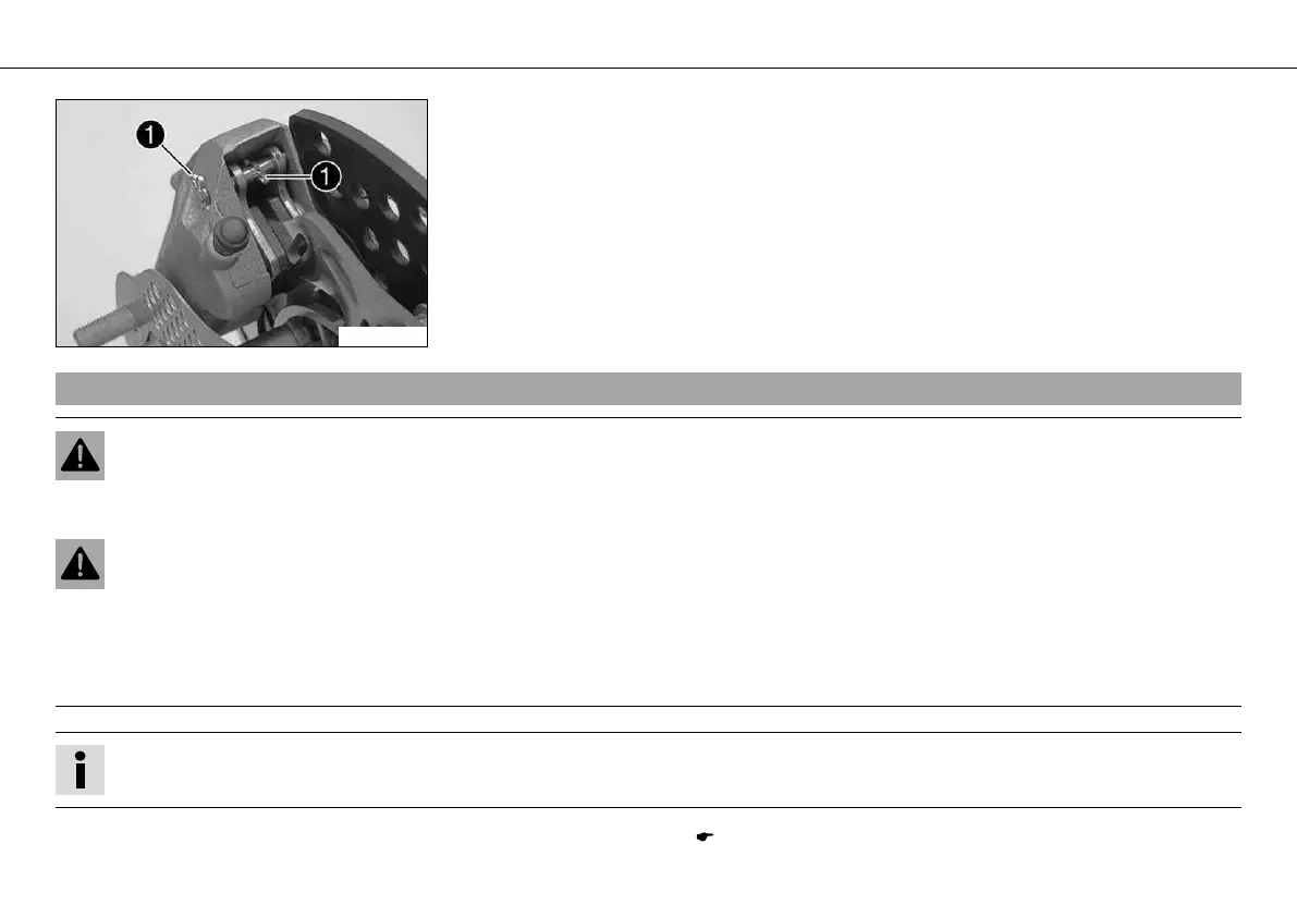– Remove the locking split pins , withdraw the bolt, and take out the brake pads.