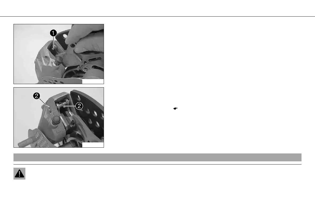– Insert the external brake lining into the brake caliper and slide the bolts in all the way.