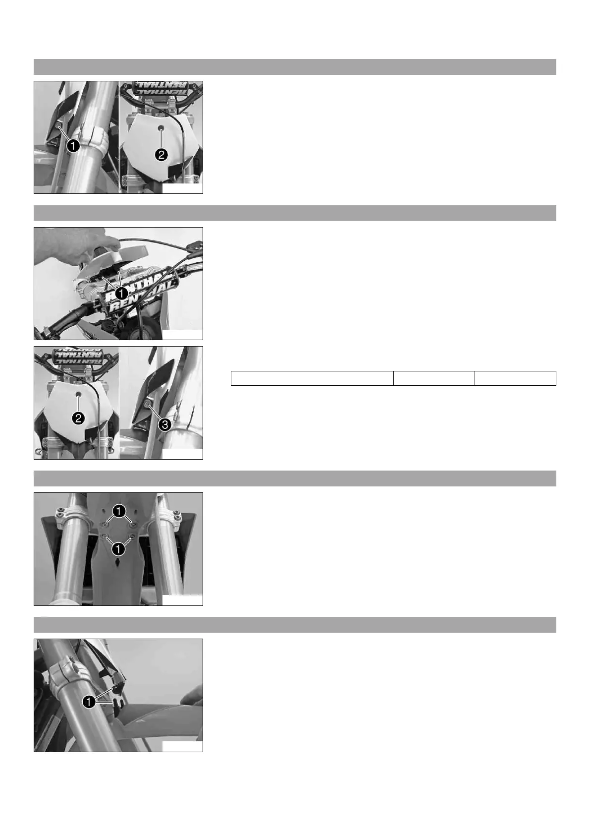 – Position the fender with holding lugs 1 into the drill holes on the start number