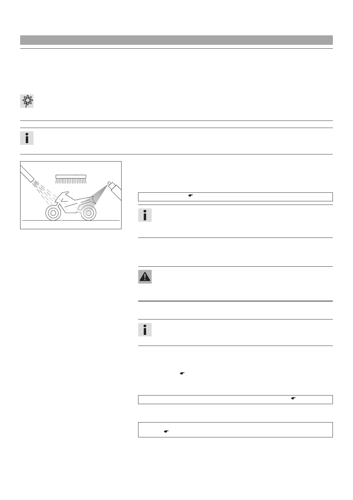 cables, bearings, etc. Maintain a minimum distance of 60 cm between the nozzle of the pressure cleaner and the component.