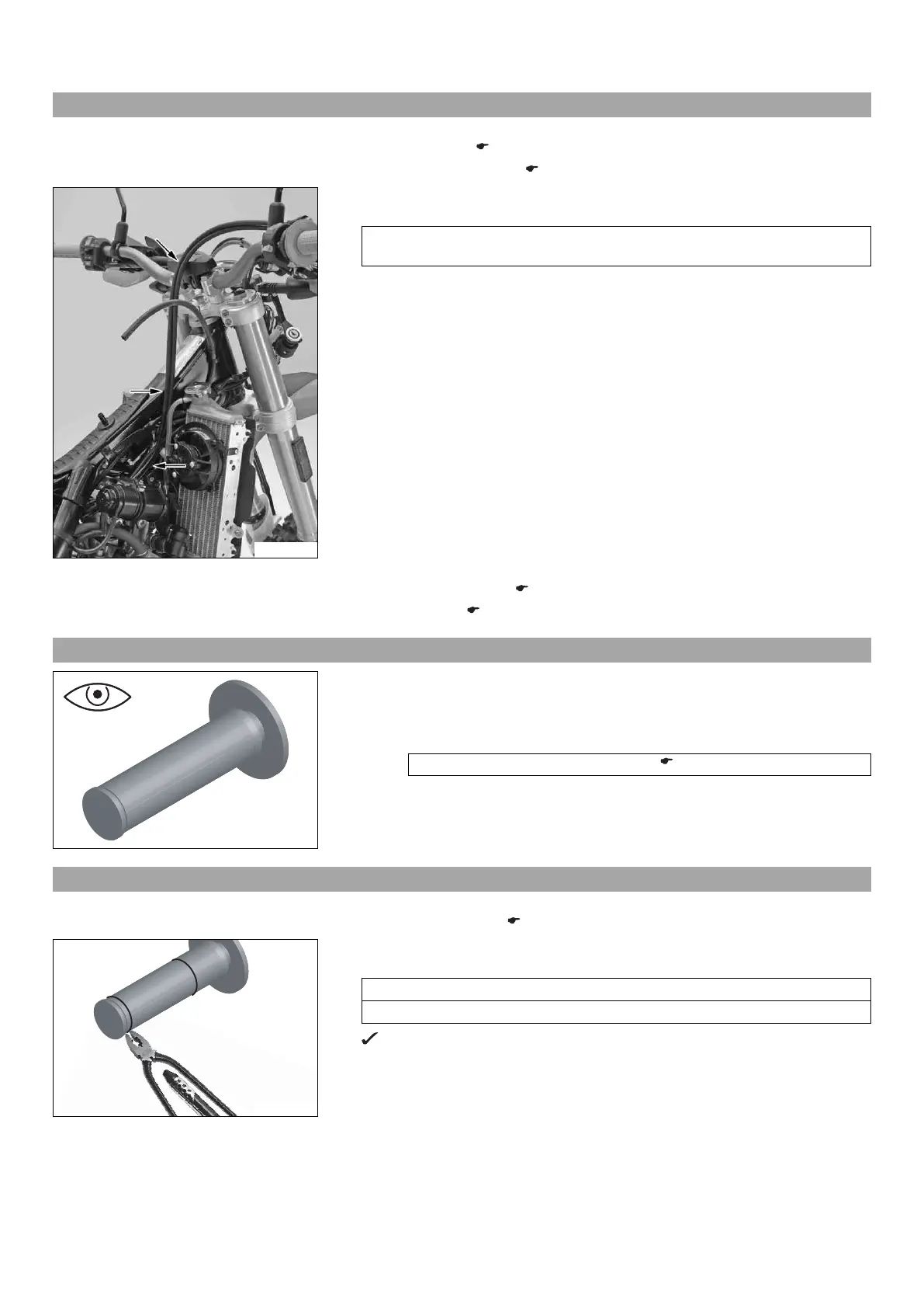 – Check the rubber grips on the handlebar for damage and wear and to ensure they