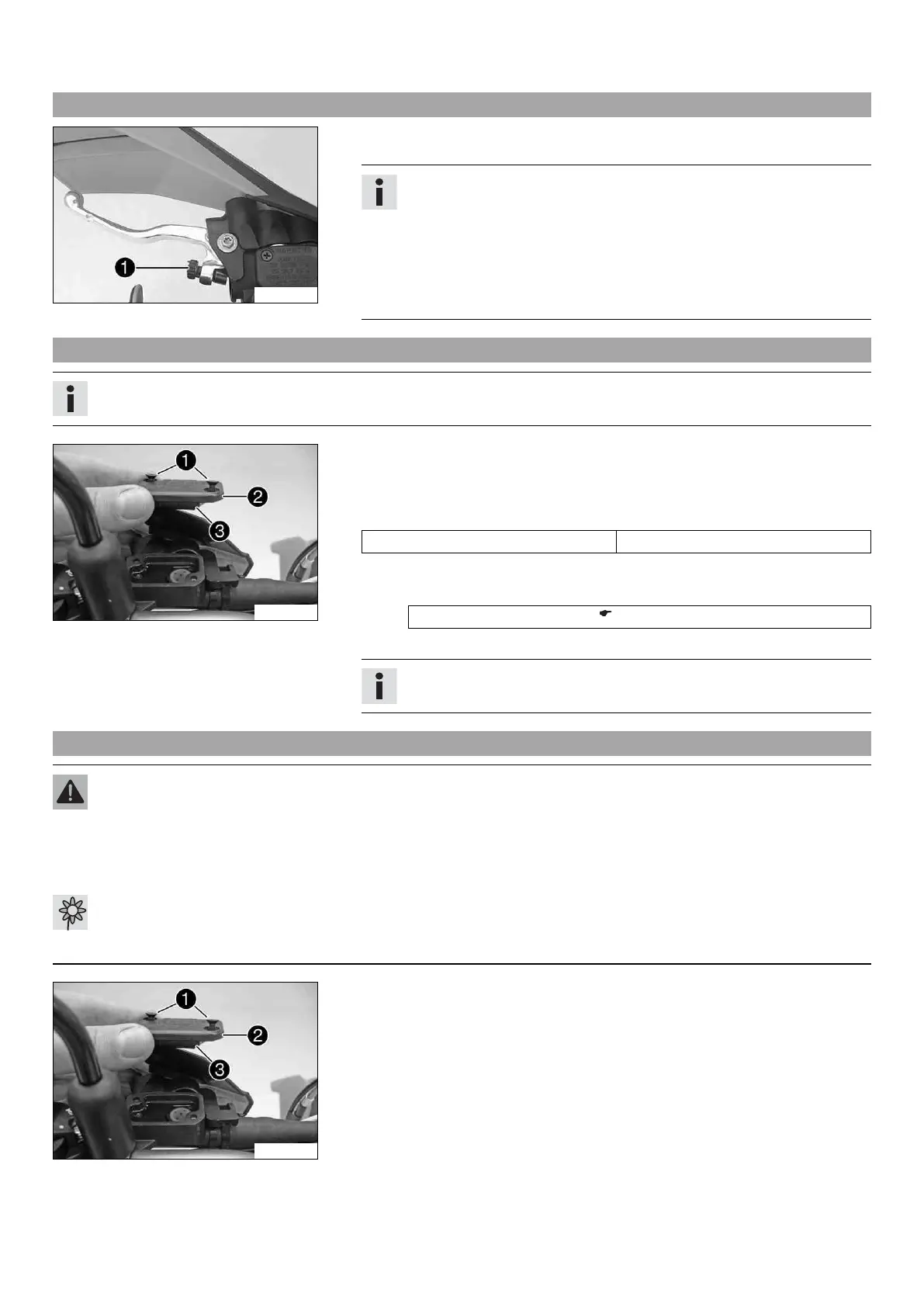 – Move the clutch fluid reservoir mounted on the handlebar to a horizontal position.
