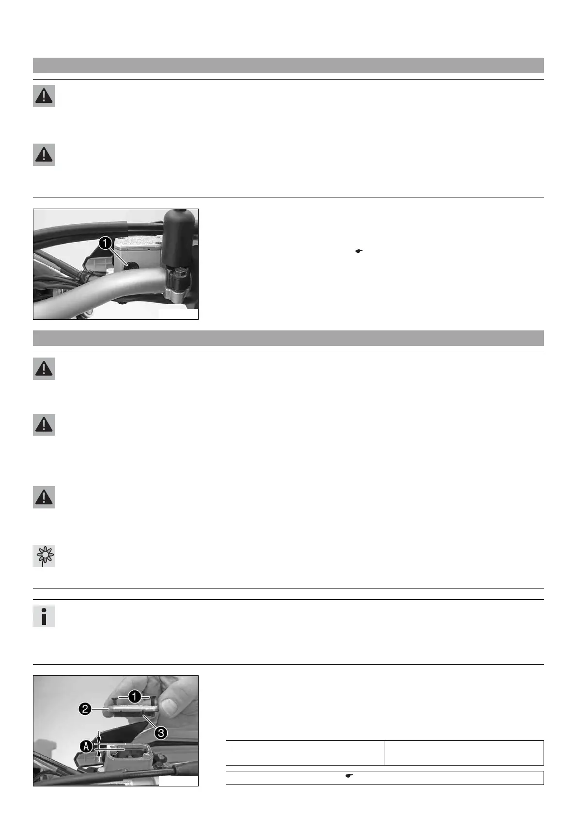 – Move the brake fluid reservoir mounted on the handlebar to a horizontal position.