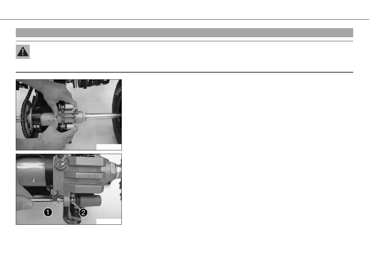 – Loosen the screw 1 while holding the hexagonal head 2 of the bearing bolt. Unscrew
