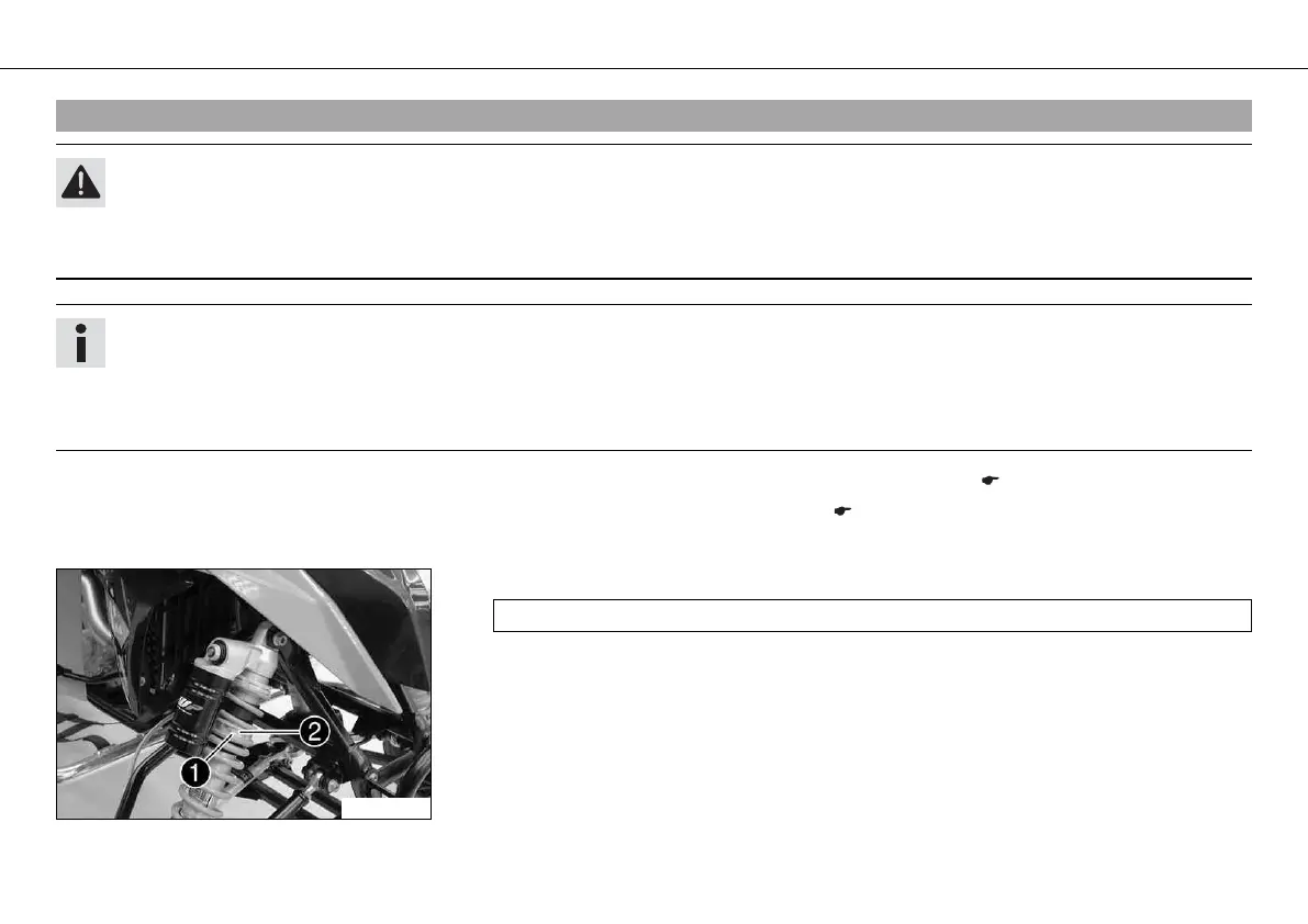 – The shock absorber is filled with high density nitrogen. Adhere to the description provided. (Your authorized KTM workshop will