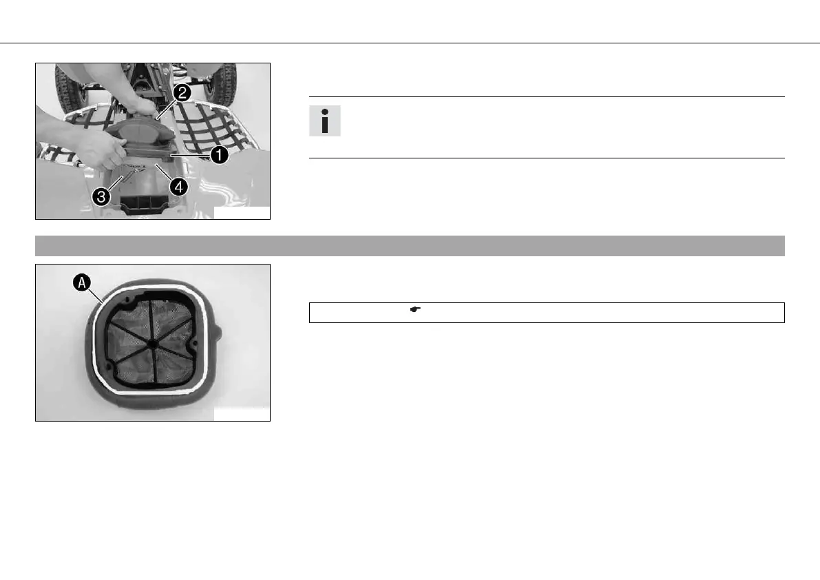 – Unhook the air filter holder 3 and swing it to the side. Remove the air filter 4 with the