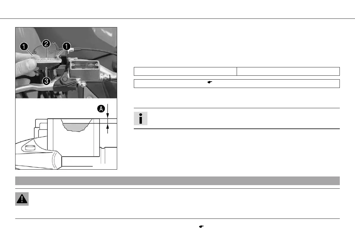 – Move the brake fluid reservoir mounted on the handlebar to a horizontal position.