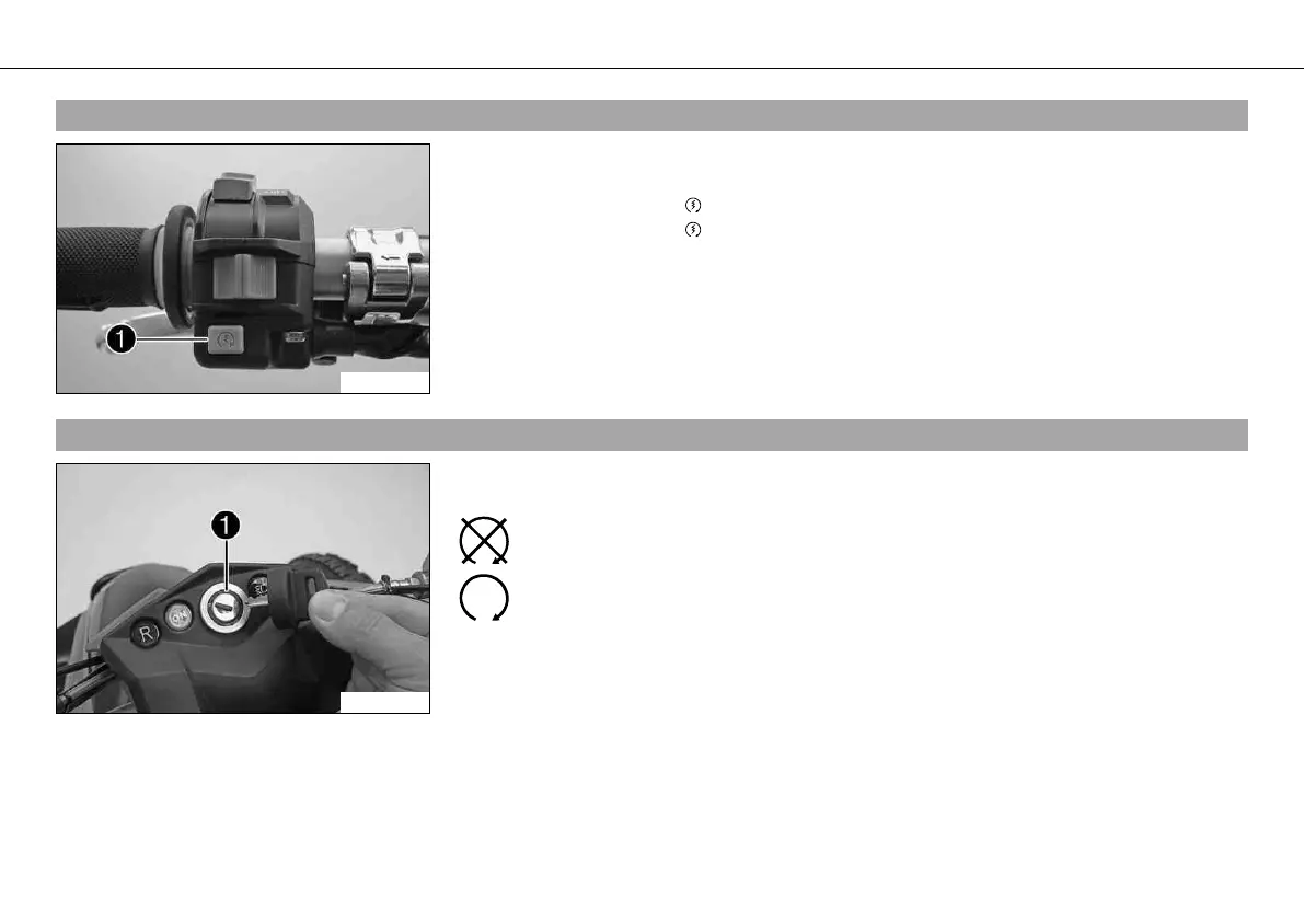 • Electric starter button is pressed – In this position, the electric starter is actuated.