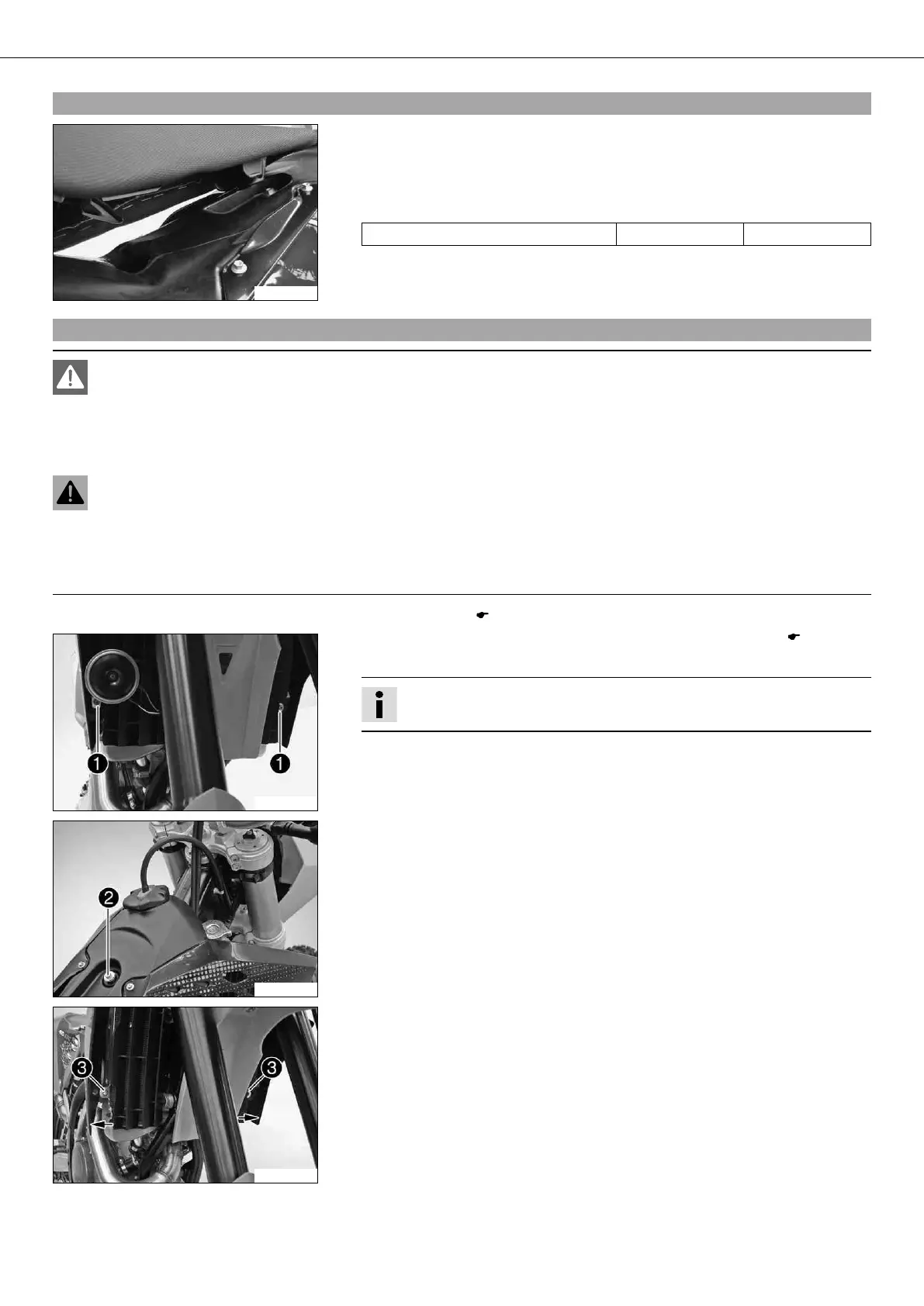 – Hook in the front of the seat at the collar sleeve of the fuel tank, lower it at the rear