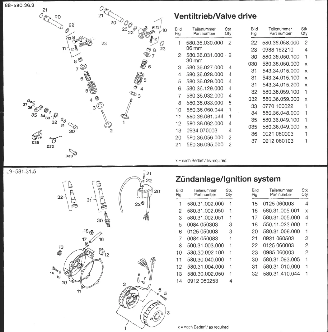 KTM 600 LC4 - Valve Train and Ignition System; Valve Drive System Components; Ignition System Components Diagram