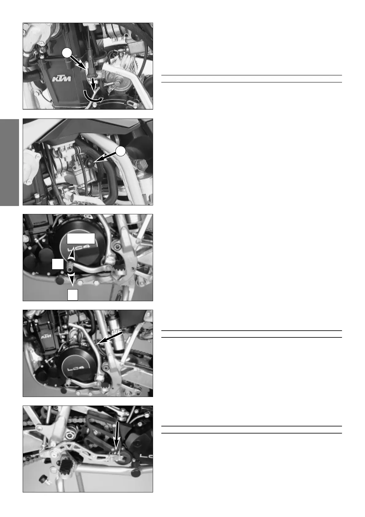 The kickstarter is mounted on the left side of the engine. Its upper part can