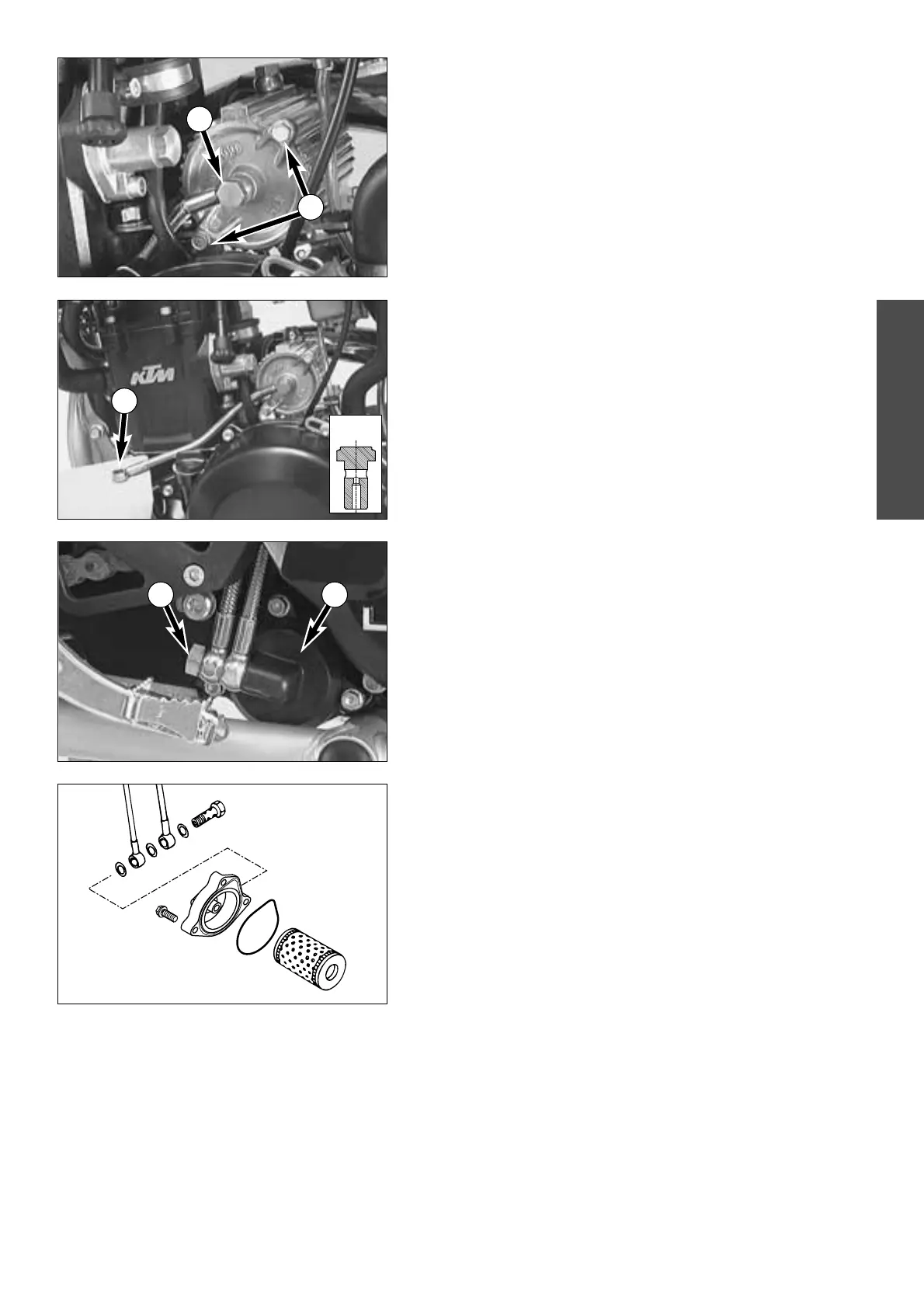 4 from the oil line on the clutch cover. Start the engine and close off