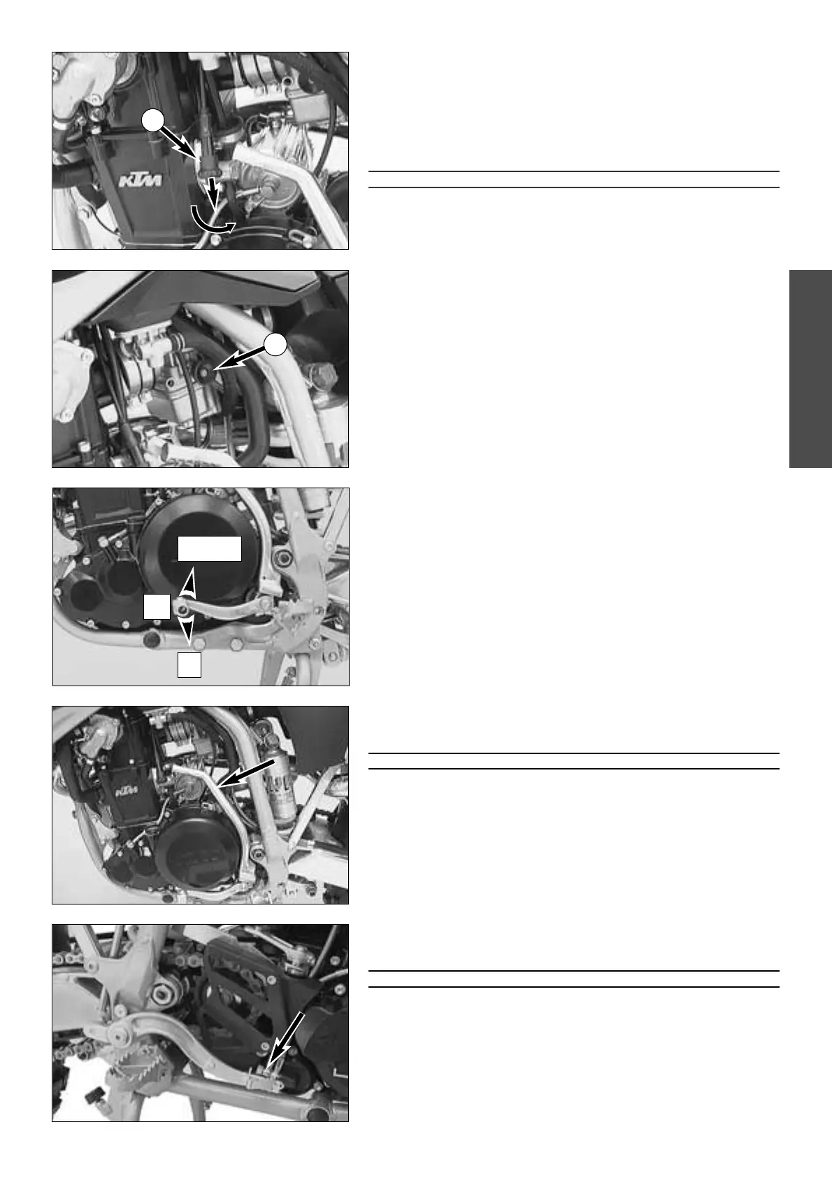 The kickstarter is mounted on the left side of the engine. Its upper part can