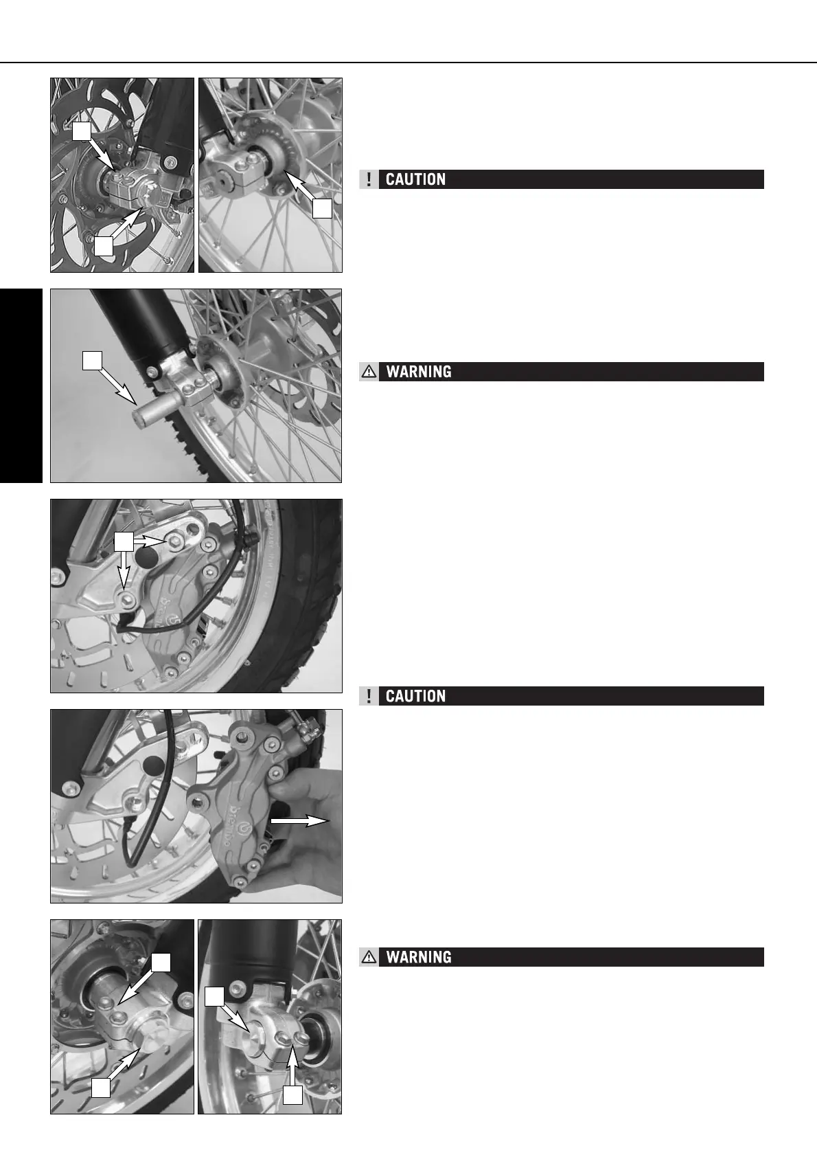 – Do not operate the hand brake when the front wheel has been dismounted.