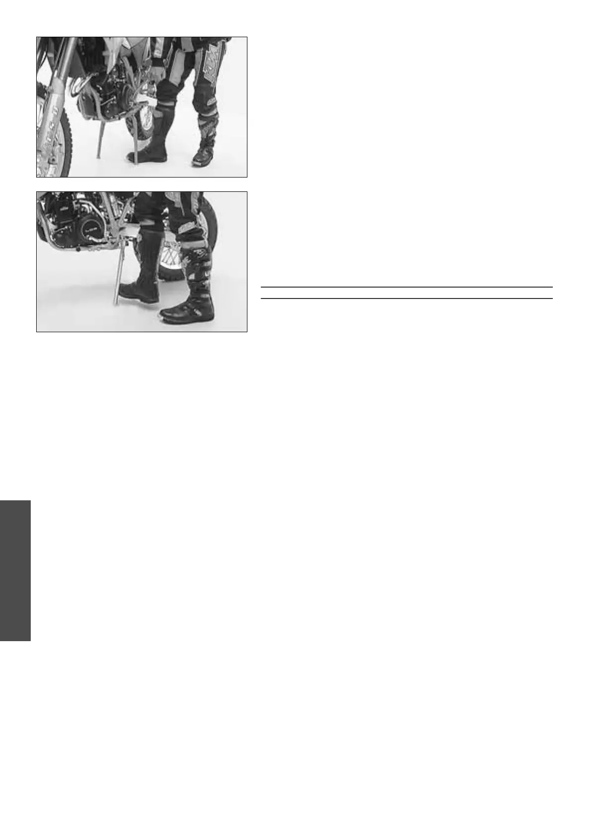 A BÉQUILLE EST CONÇUE SEULEMENT POUR LE POIDS DE LA MOTO. SIL’ON S’ASSIED
