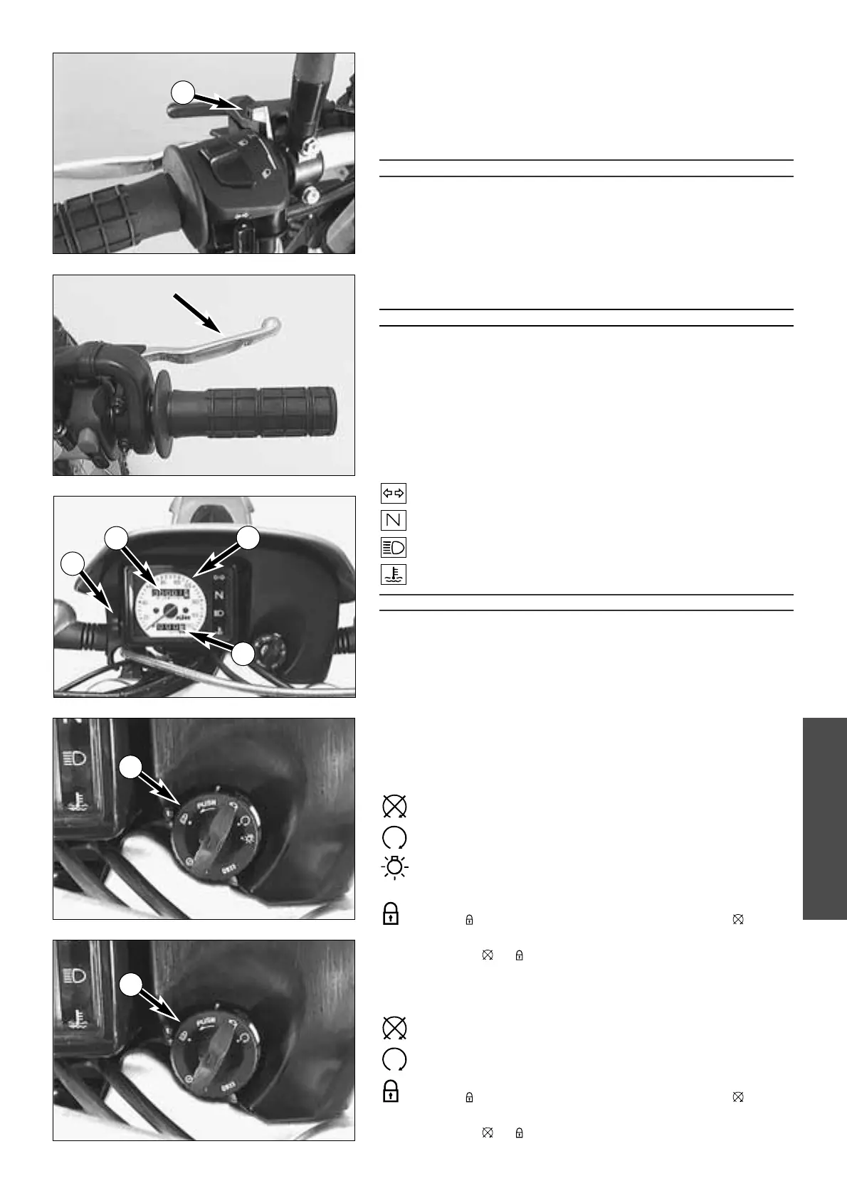 Allumage coupé. Eclairage coupé. (Le moteur ne peut être démarré).