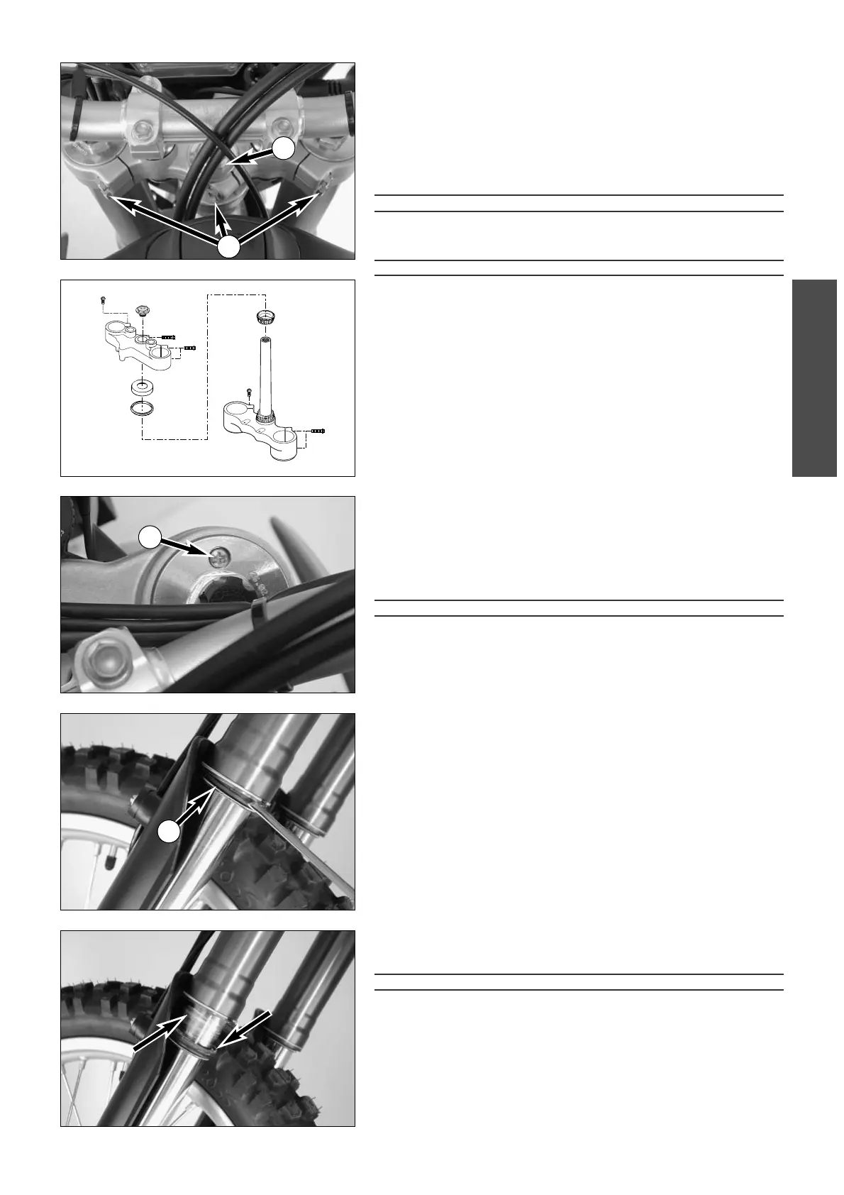 on the triple clamp to avoid tension. Re-tighten the five clamp screws with