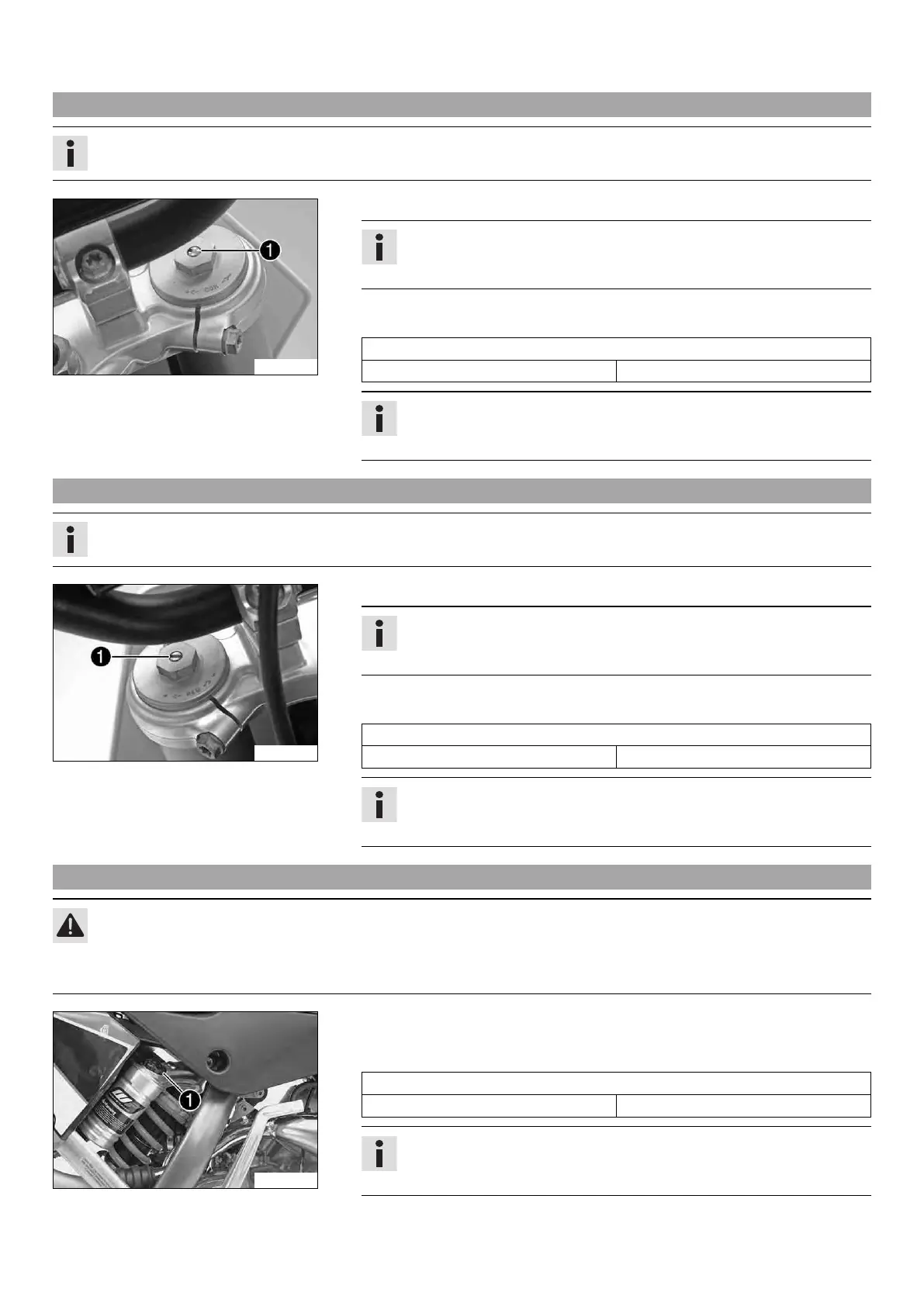 – The shock absorber is filled with high density nitrogen. Adhere to the description provided. (Your authorized KTM workshop